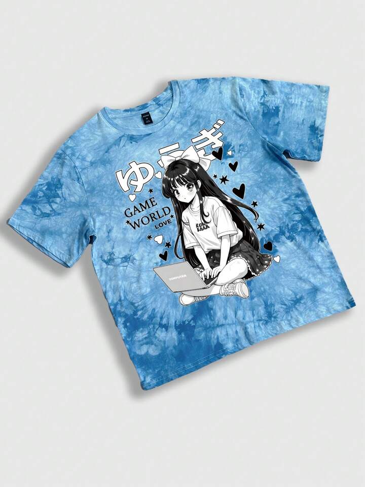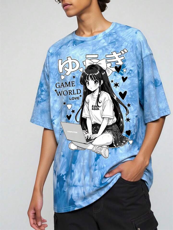 Camiseta estampada con anime de moda callejera Y2K para hombres, apropiada para uso diario en primavera/verano