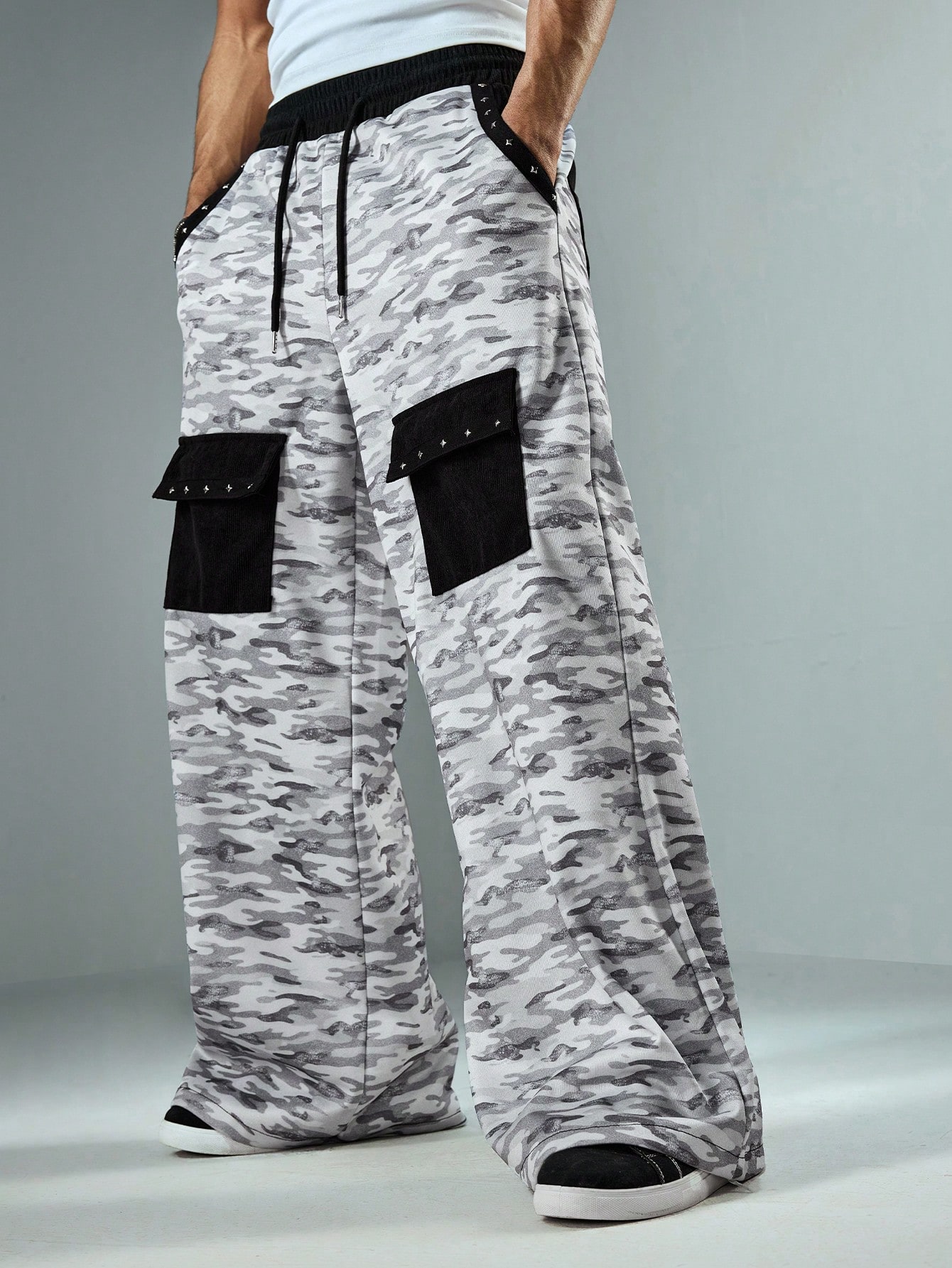 Pantalones casuales de camuflaje con parches para hombre, otoño/invierno