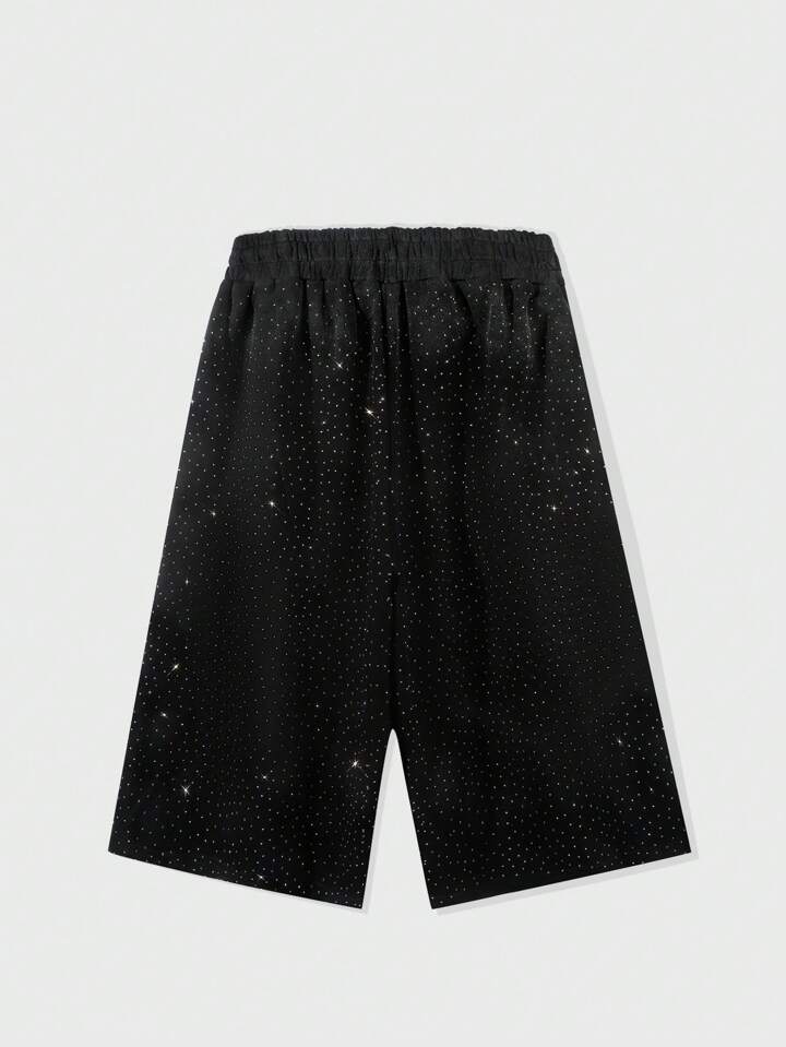Pantalón de chándal corto holgado, con cintura elástica, lavado con efecto desgastado y decorado con rhinestones para hombre, para rave