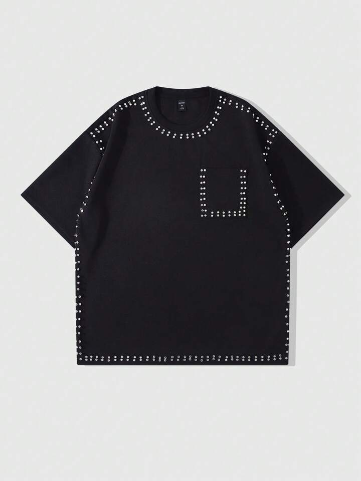 Camiseta casual de cuello redondo y manga corta para hombre con tachuelas metálicas y holgada