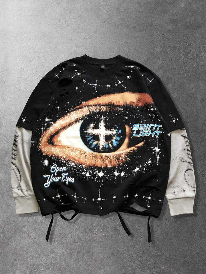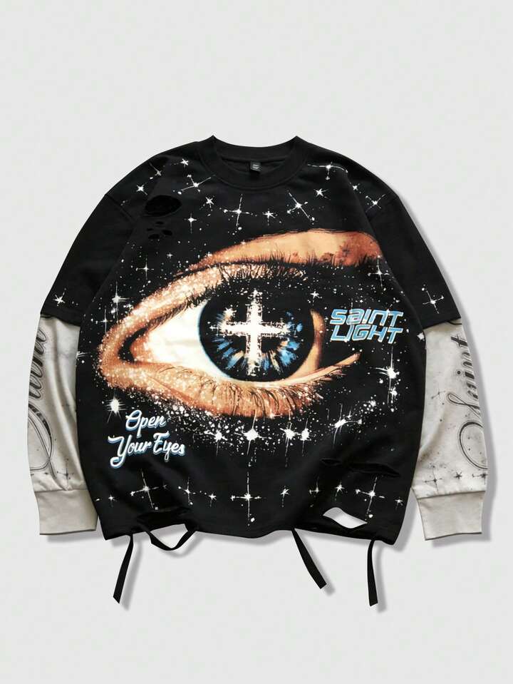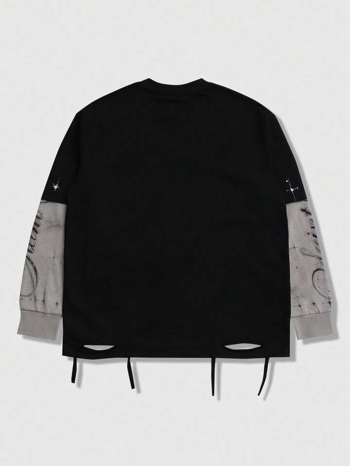 Camiseta de manga larga casual de 2 en 1 para hombre