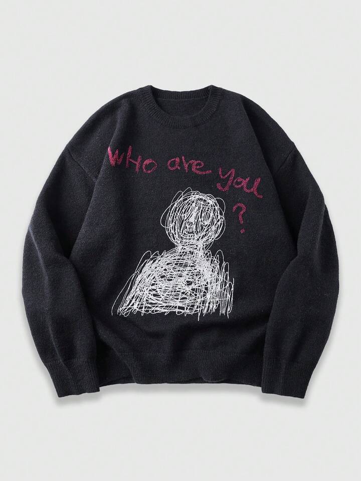 Suéter casual de hombre con estampado de eslogan abstracto, otoño/invierno