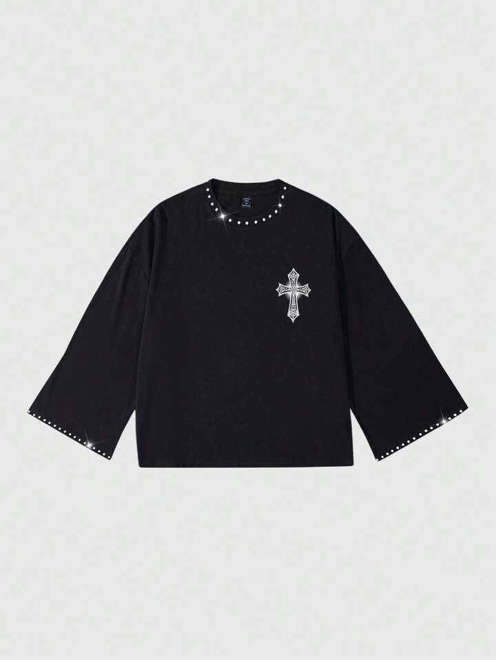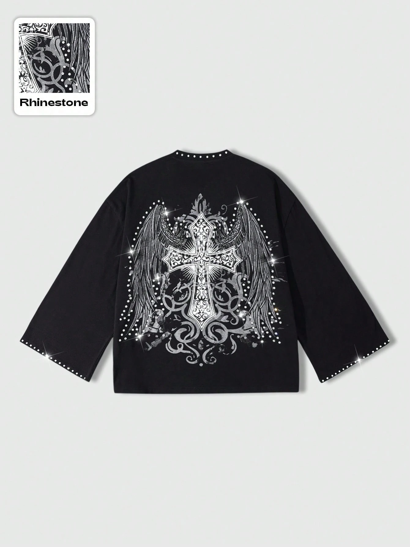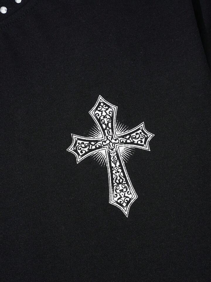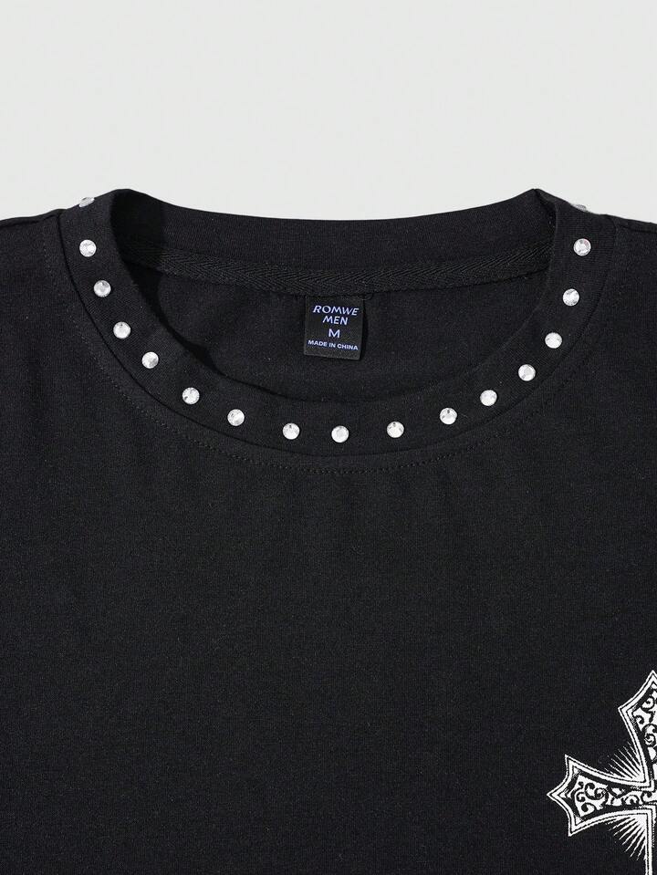 Camiseta casual de cuello redondo con gráfico de cruz y alas para hombres