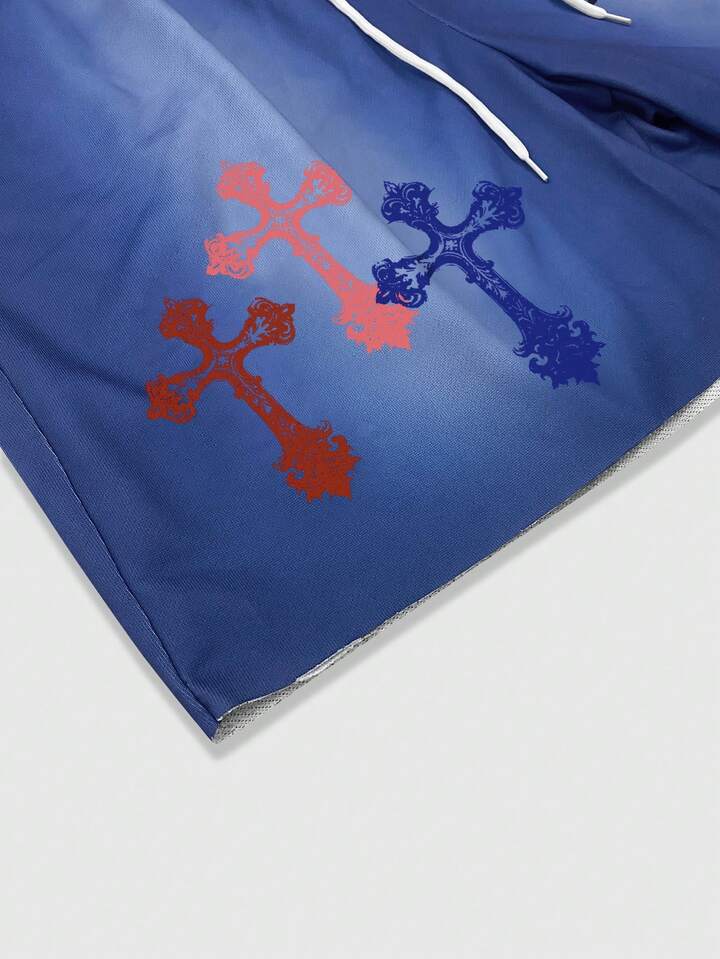 Pantalones cortos casuales de hombre con estampado de cruz, verano