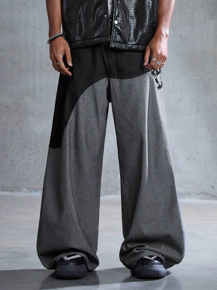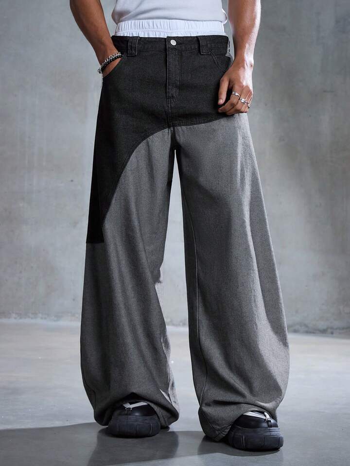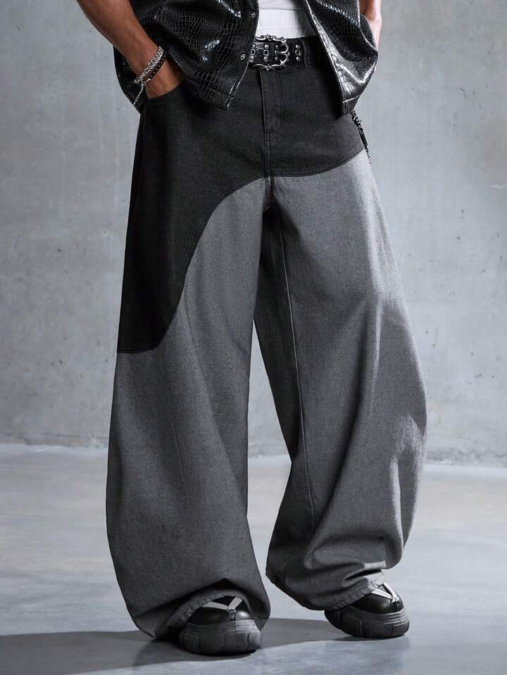 Jeans anchos y sueltos de estilo casual y urbano con bloques de color para hombres