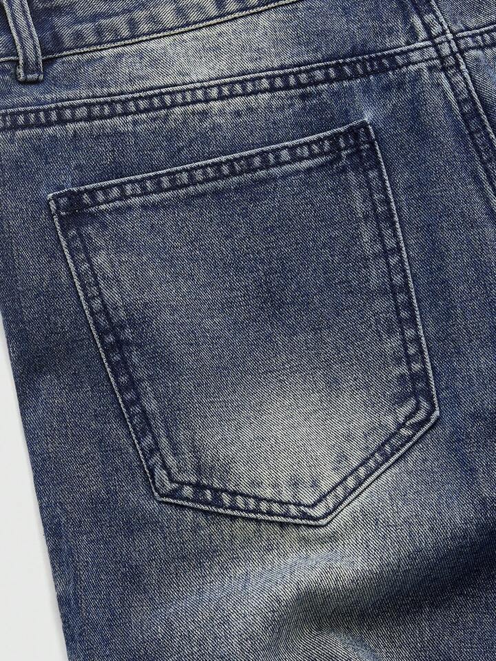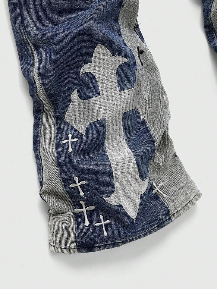 Jeans acampanados de moda casual para hombres con lavado y estampado de cruz