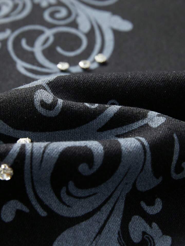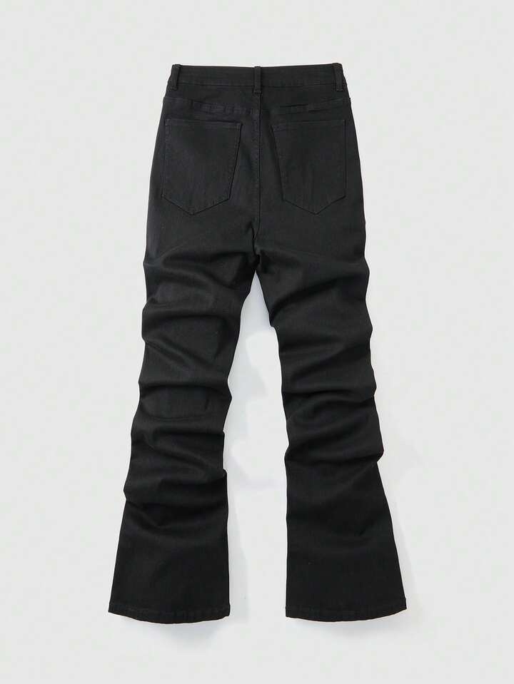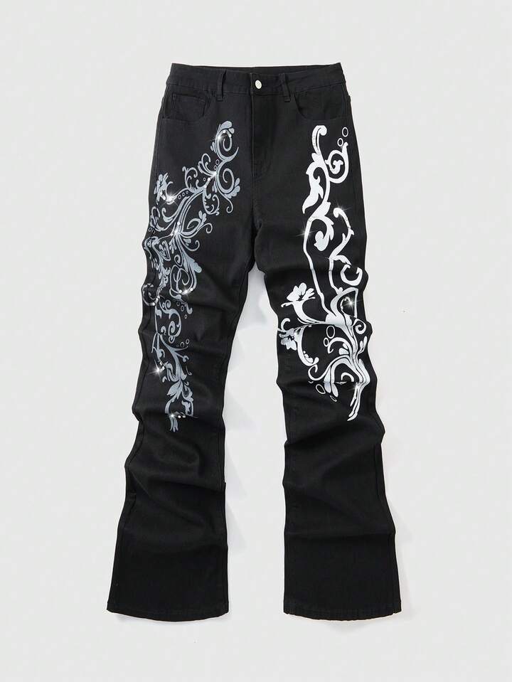 Jeans acampanados de moda casual para hombres con estampado floral y decoración de rhinestones