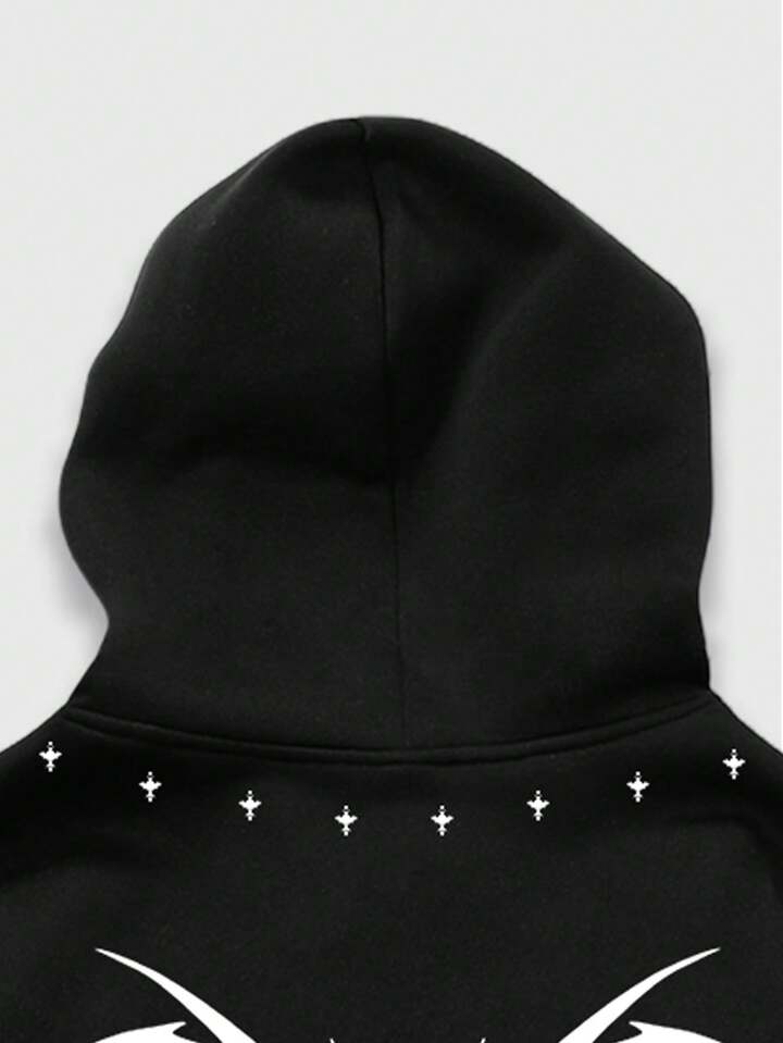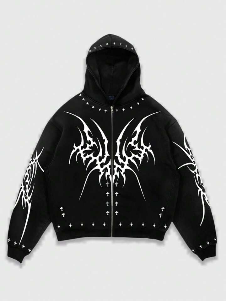 Sudadera con capucha con cremallera y estampado gráfico y de cruz, de estilo casual y de moda para hombre