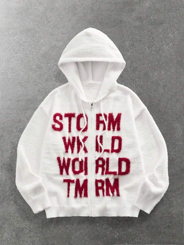 Sudadera con capucha con cremallera, cordón y eslogan gráfico, de moda casual para hombre, para otoño/invierno