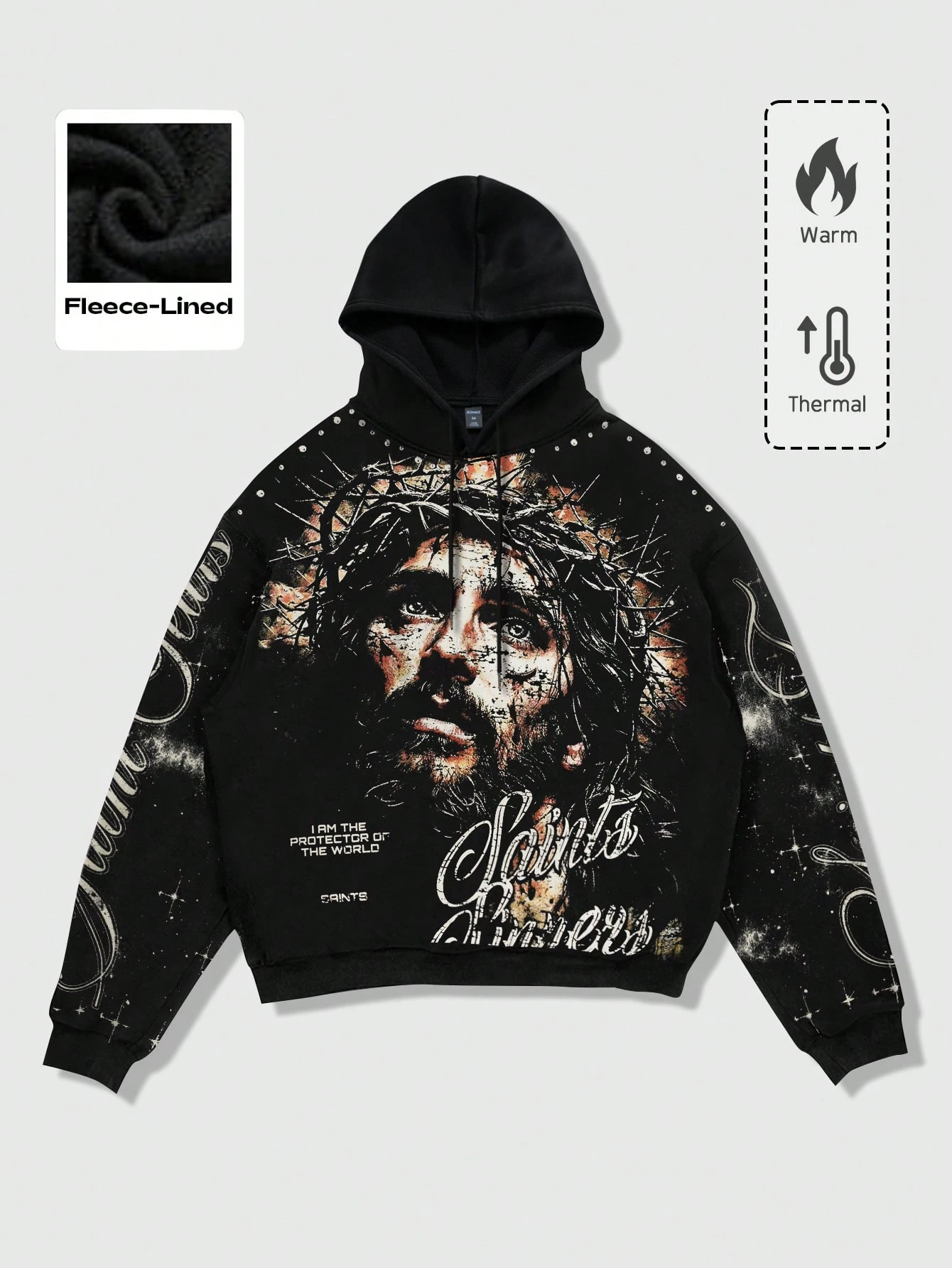 Sudadera con capucha casual con estampado de figura para hombres, otoño/invierno