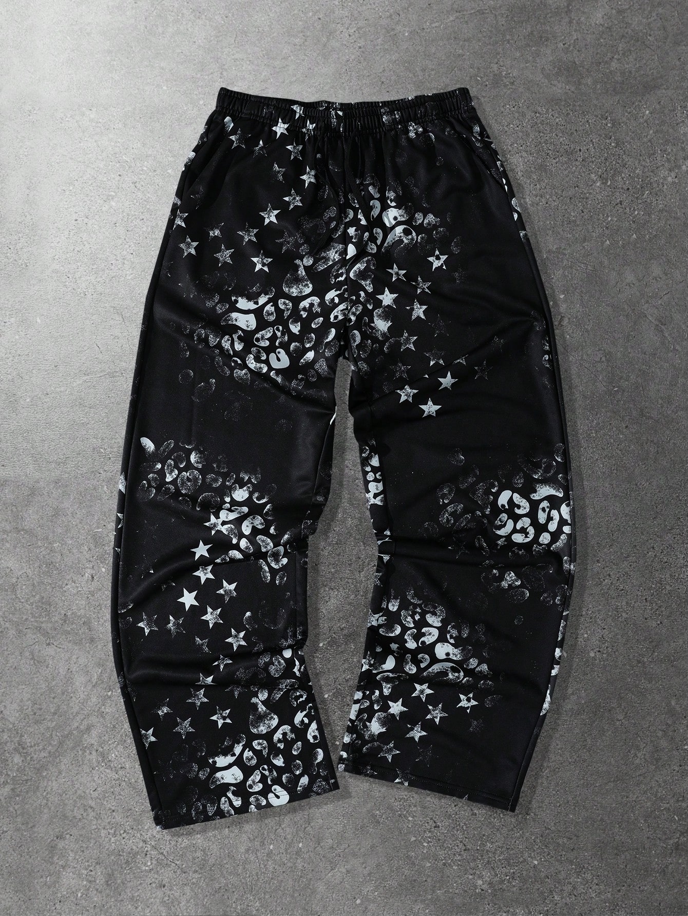 Pantalones de chándal holgados con estampado de leopardo y estrellas para hombre