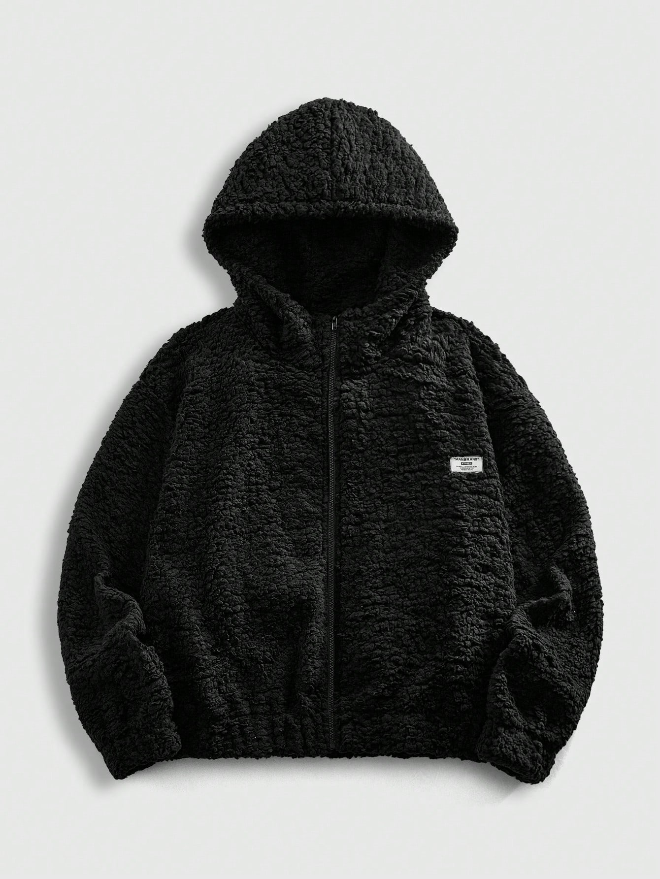 Sudadera con capucha de forro polar con cremallera y parche de letra casual para hombre, otoño/invierno