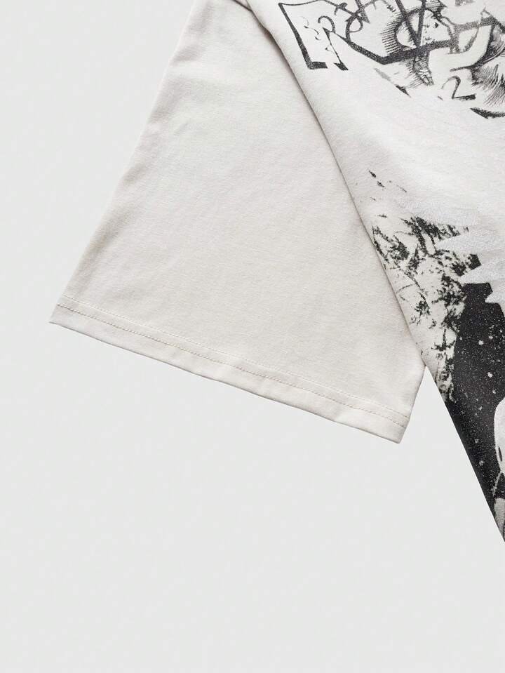 Camiseta de manga corta casual con estampado de letras para hombre, verano