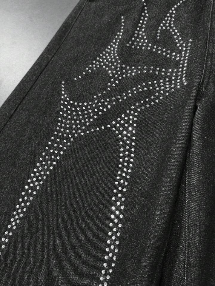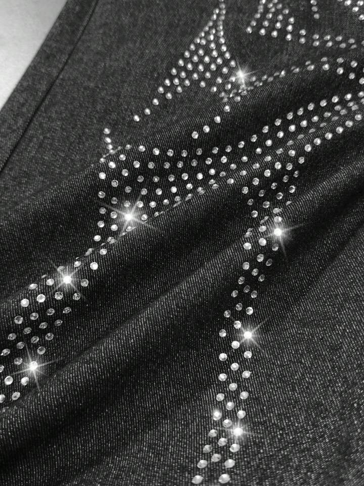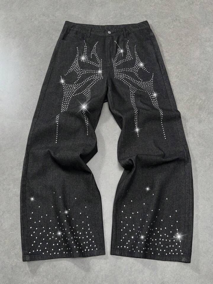 Jeans casuales y holgados para hombre con aplicaciones de strass y presillas para cinturón