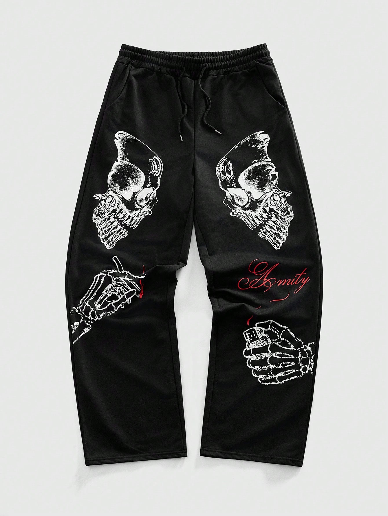 Pantalones de chándal casuales con cordón y estampado para hombres