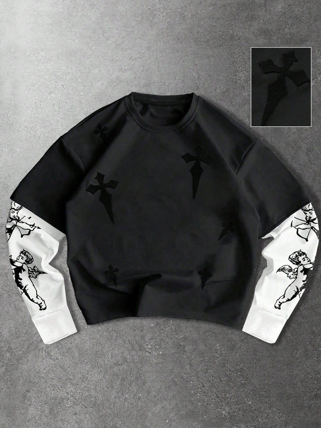 Camiseta casual de cuello redondo para hombre con patrón cruzado 2 en 1