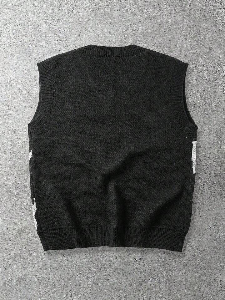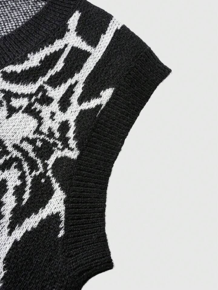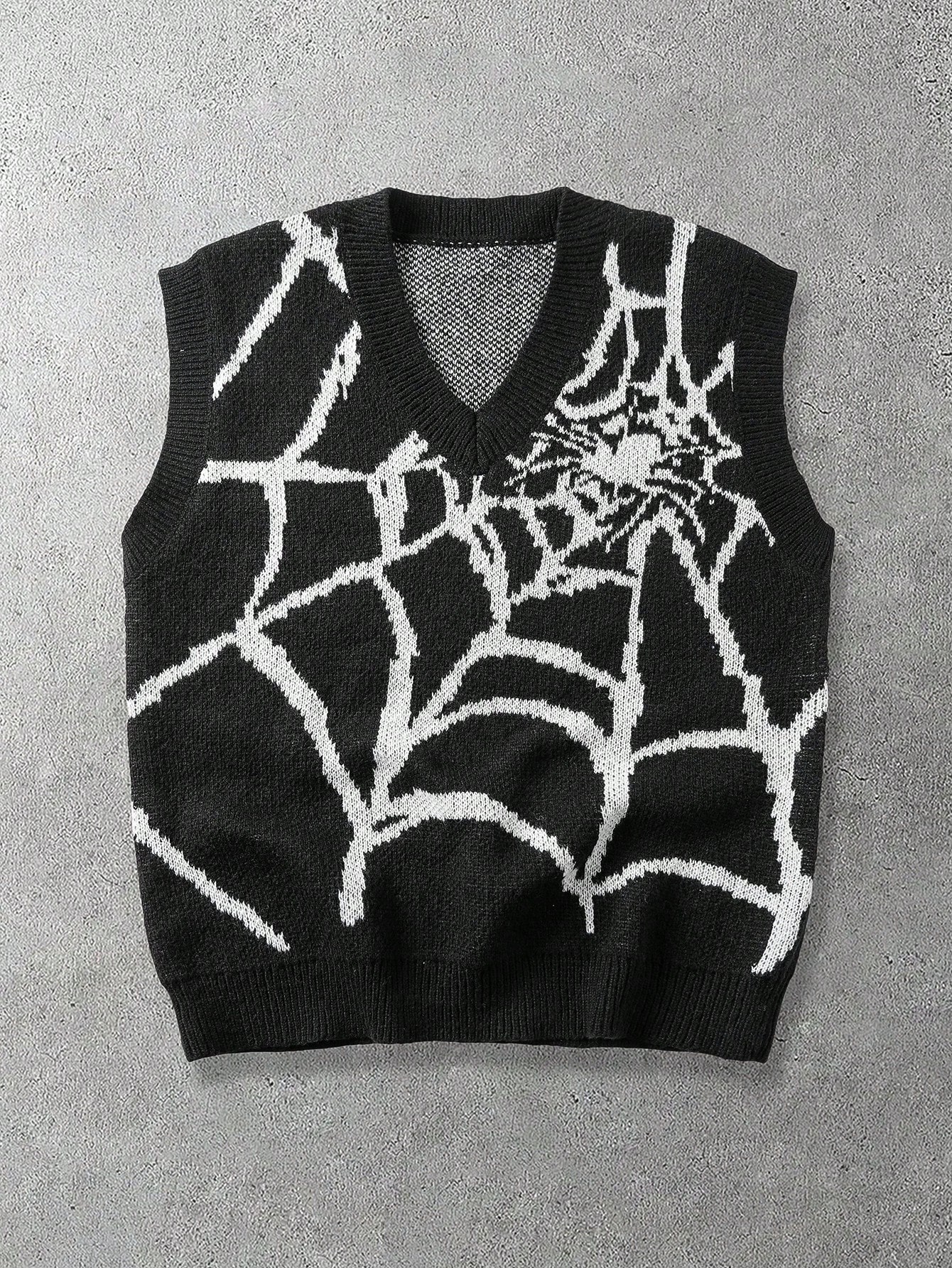Chaleco de punto con cuello en V con patrón de telaraña casual para hombres, adecuado para el uso diario, Halloween, otoño/invierno