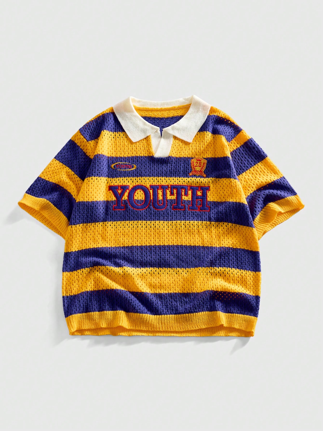 Camisa polo de punto bordada con rayas de contraste para hombre