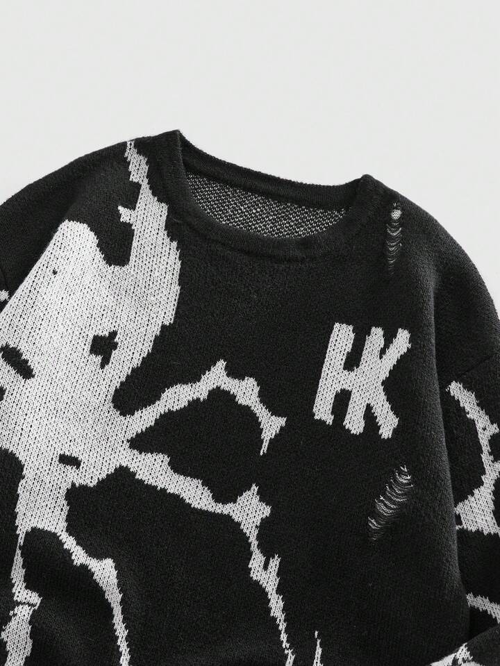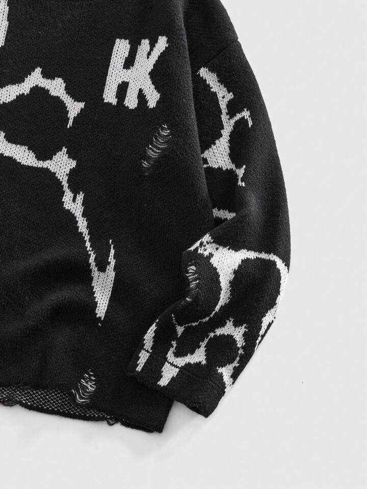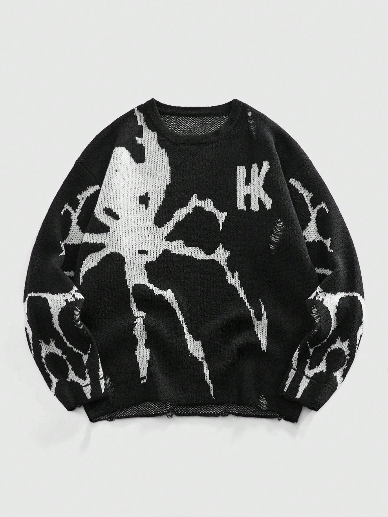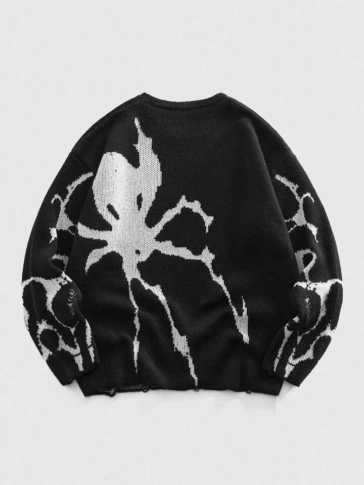 Jersey de cuello redondo de punto oscuro con diseño de araña para hombre