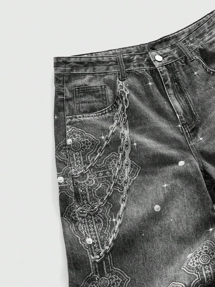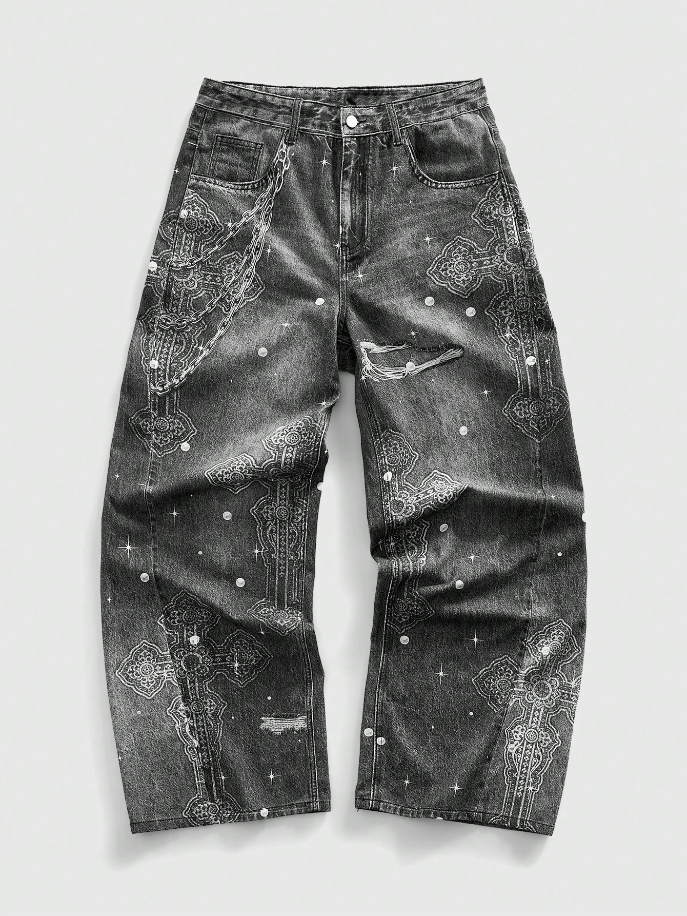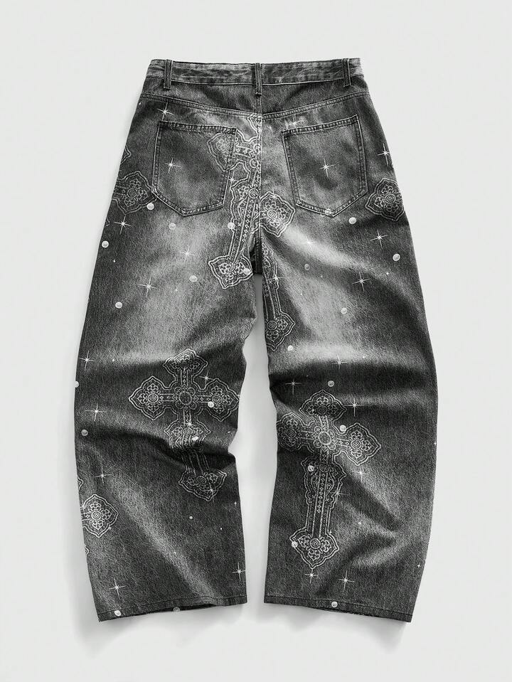 Jeans casuales anchos y sueltos con bolsillo de patrón de cruz para hombres