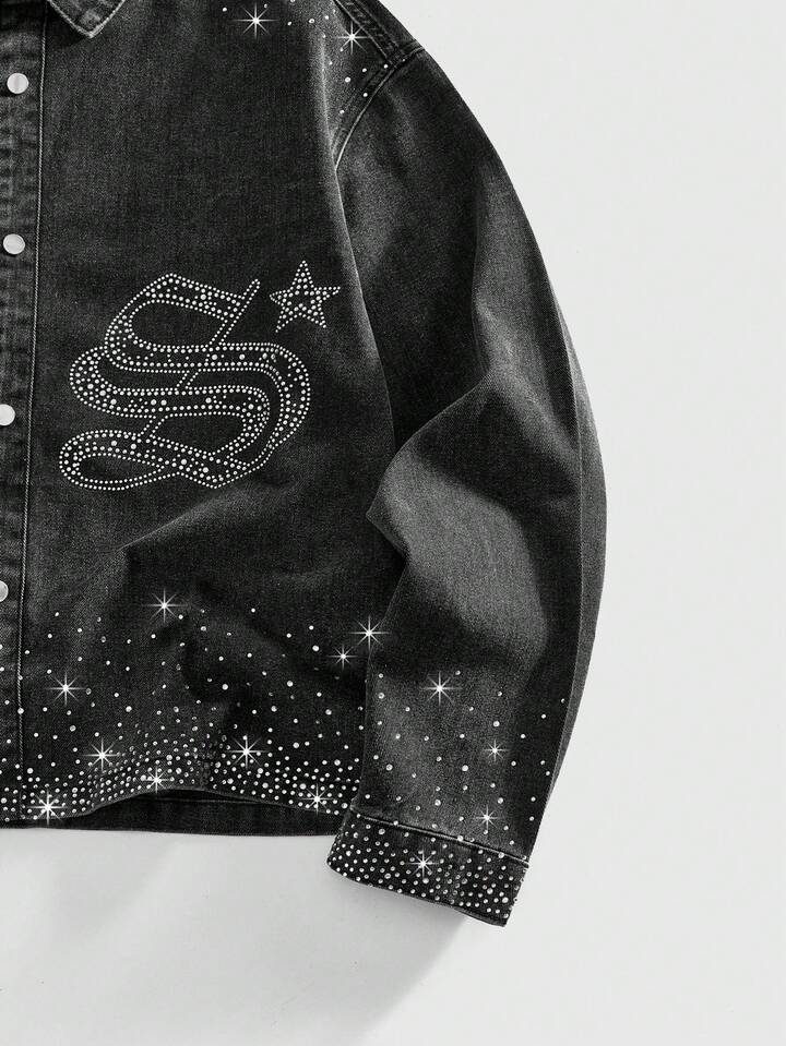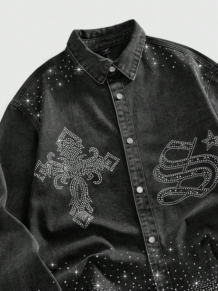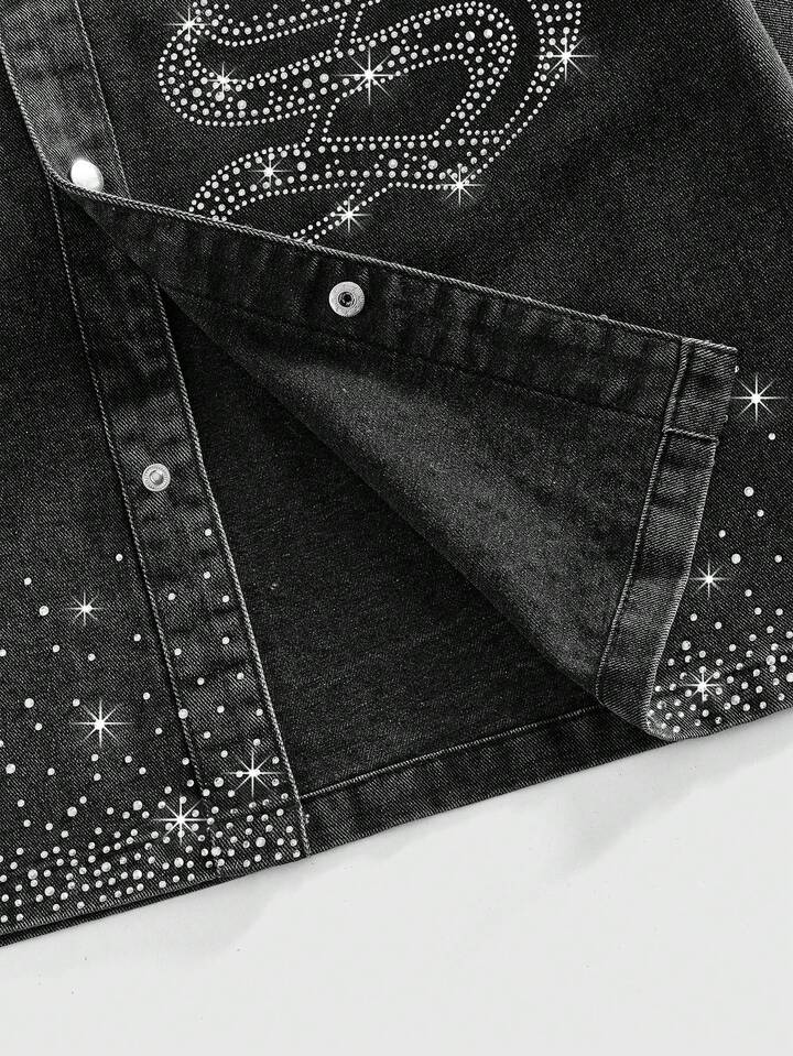 Chaqueta vaquera de solapa única con adorno de cruz de rhinestone para hombres
