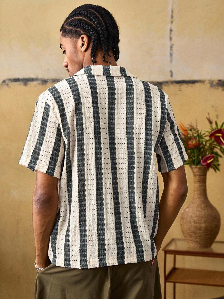 Camisa casual de cuello cubano a rayas para vacaciones de hombre