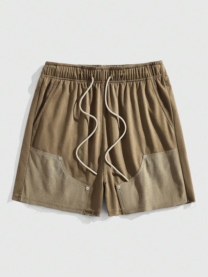 Pantalones cortos holgados y versátiles para hombre con cintura con cordón y bolsillos