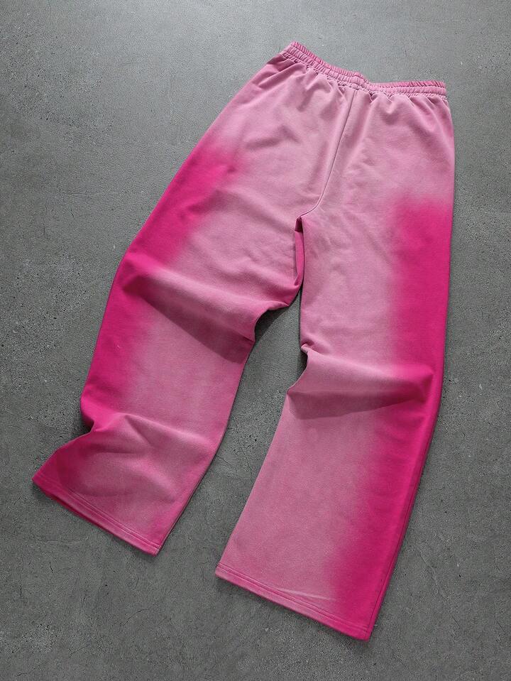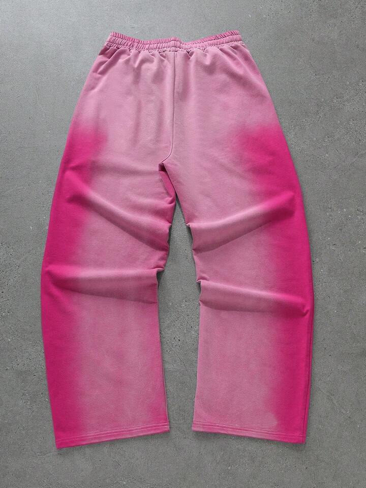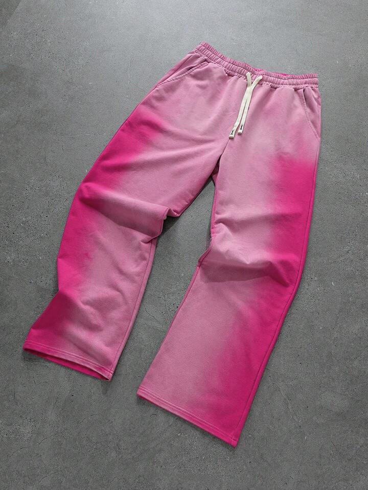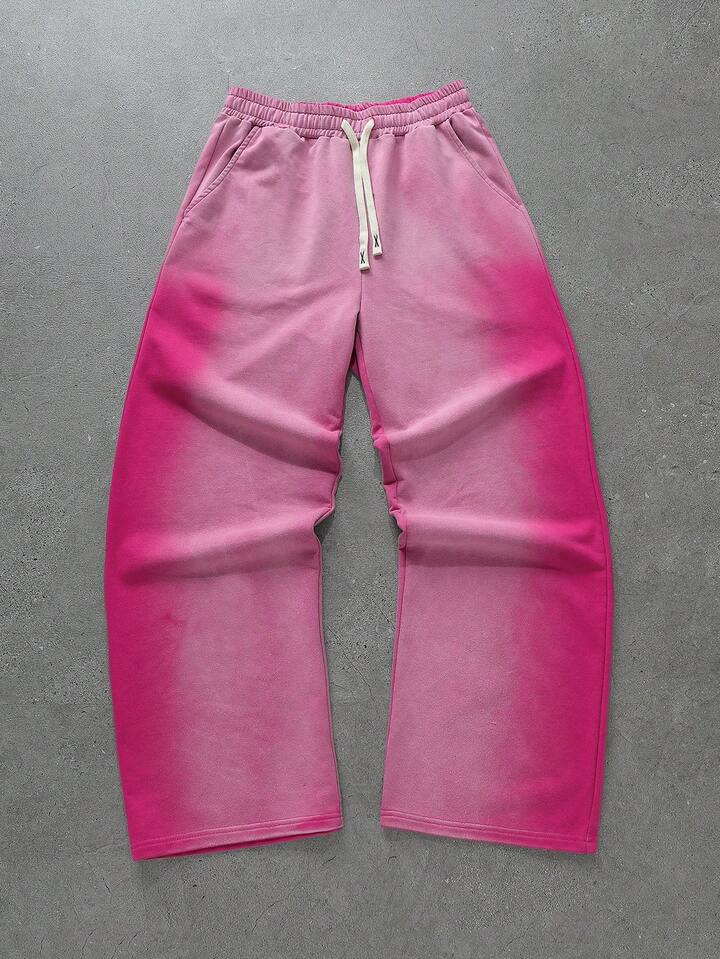 Pantalones de chándal casuales de pierna ancha con cintura con cordón y bolsillos, efecto degradado