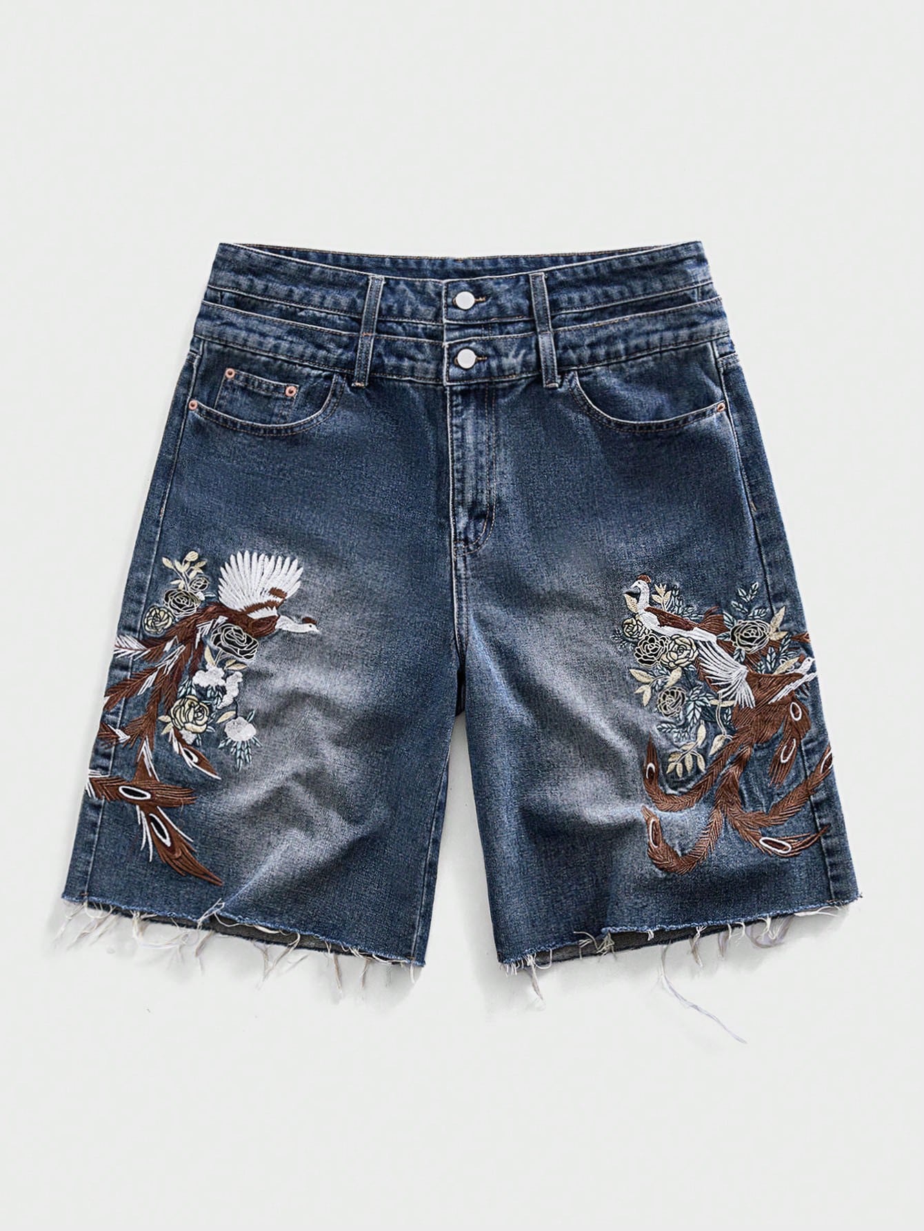 Pantalones cortos de mezclilla de corte holgado con patrón bordado para hombre