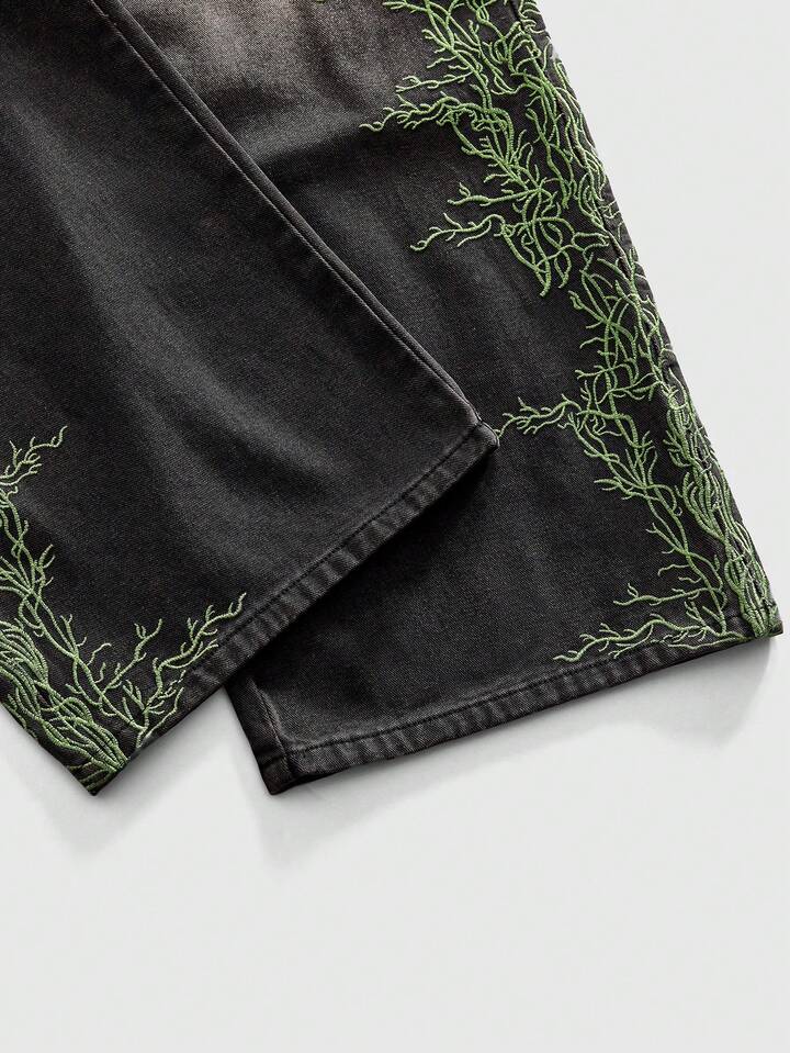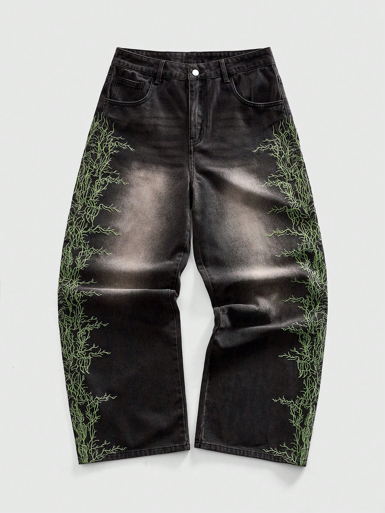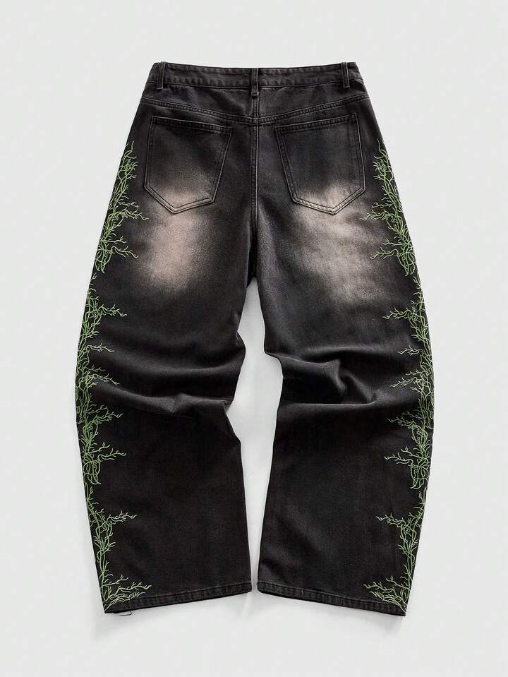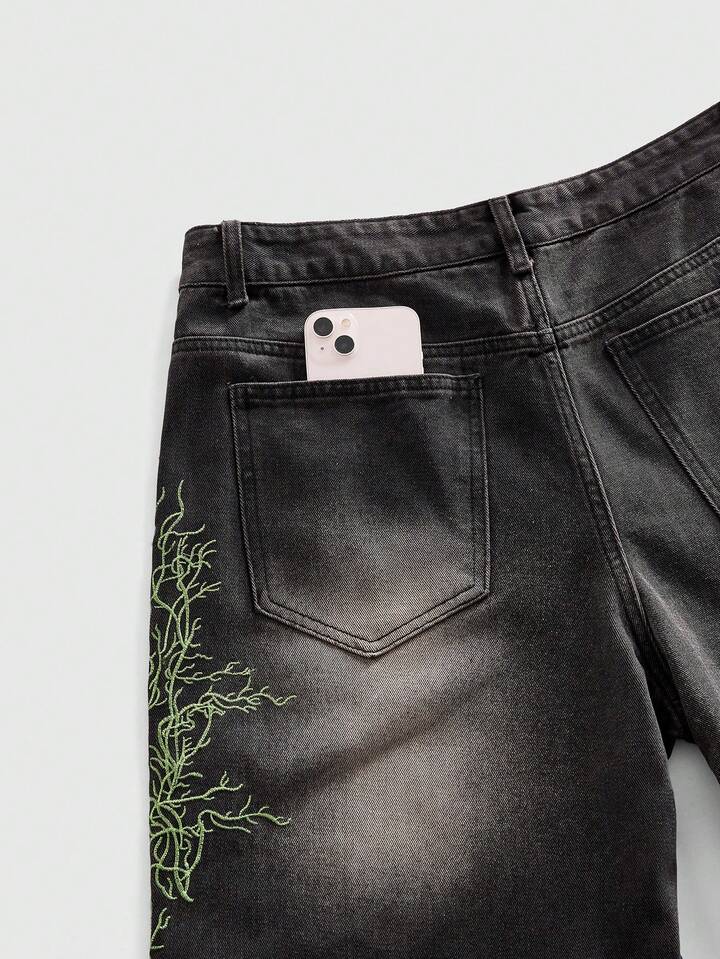 Jeans casuales de corte holgado con bolsillo bordado para hombre