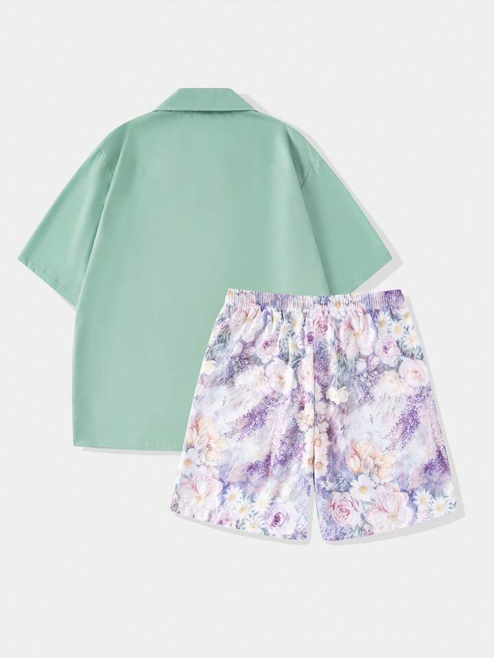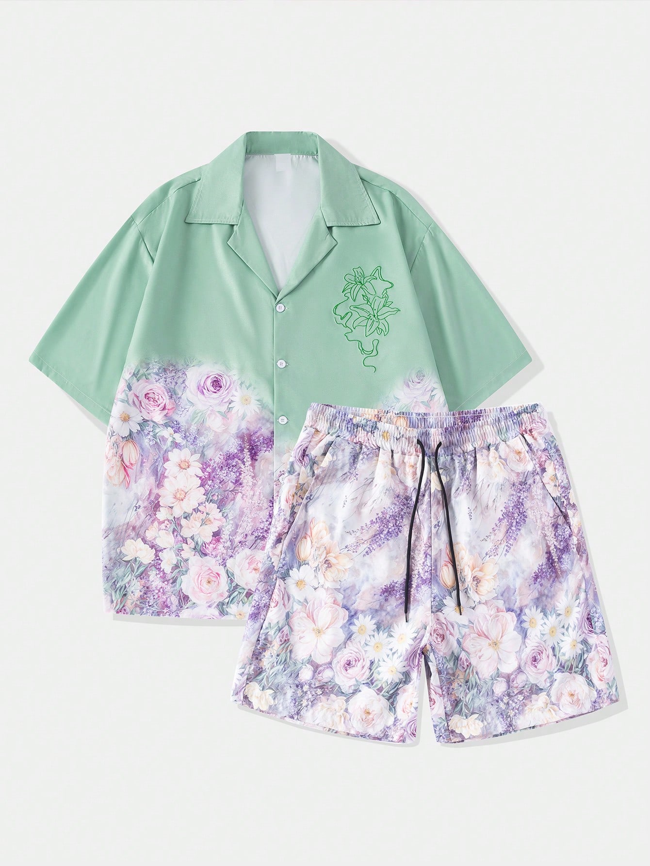 Set de camisa casual bordada y pantalones cortos para hombres, conjunto de vestir de vacaciones de moda para el verano