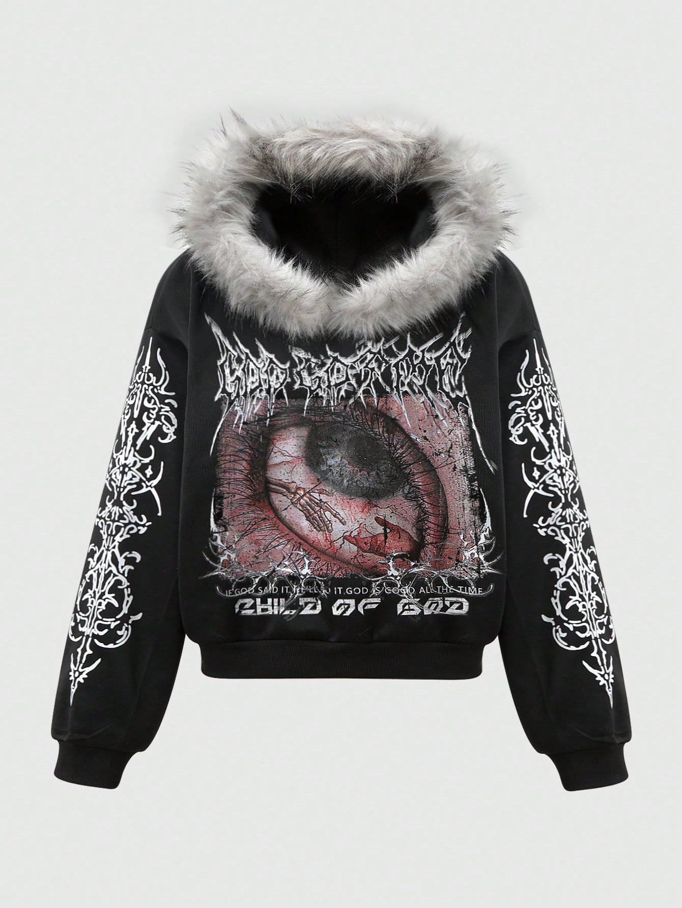 Sudadera con capucha casual con estampado de ojos para hombres, versátil para el transporte, otoño/invierno