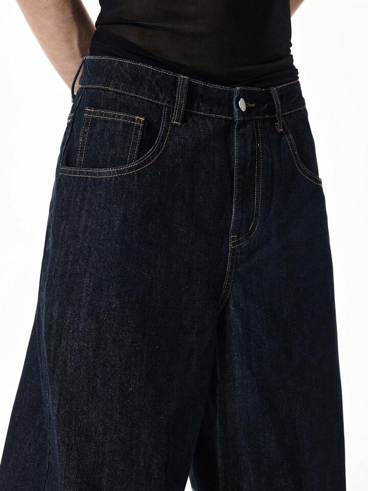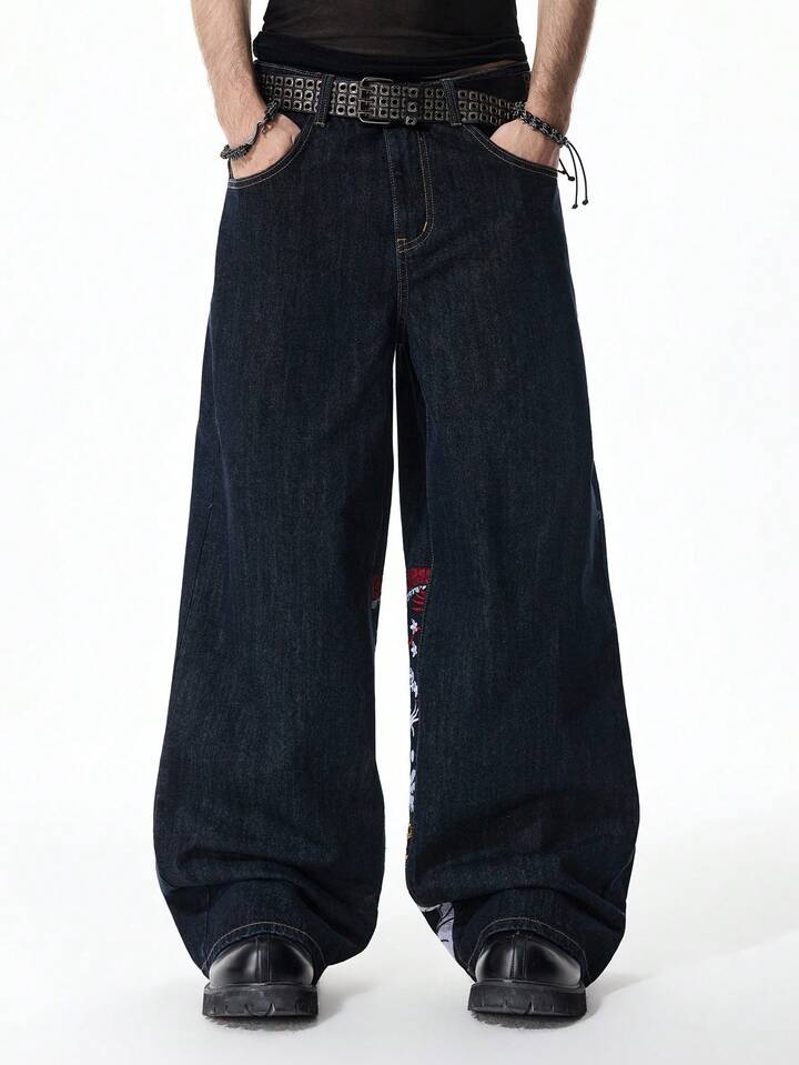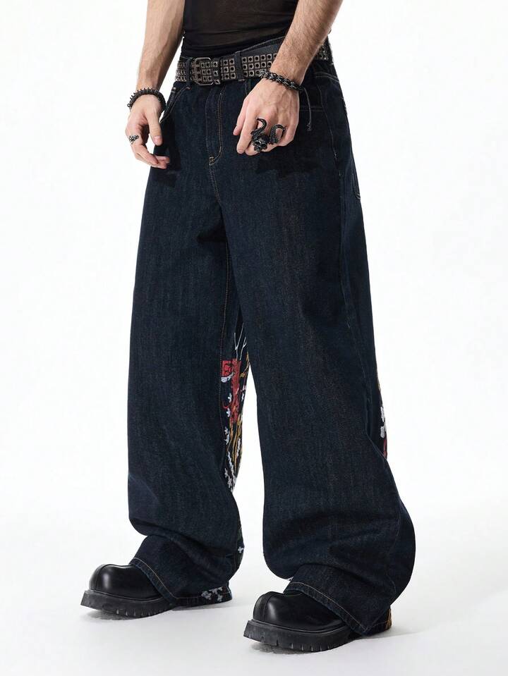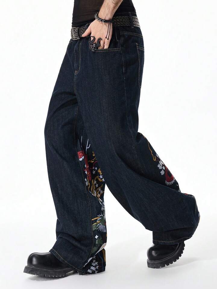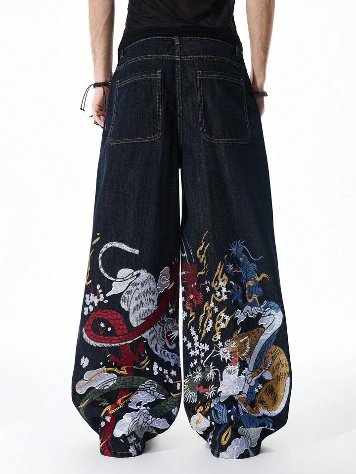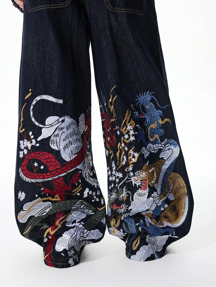 Jeans de pierna ancha con bordado de dragón para hombre