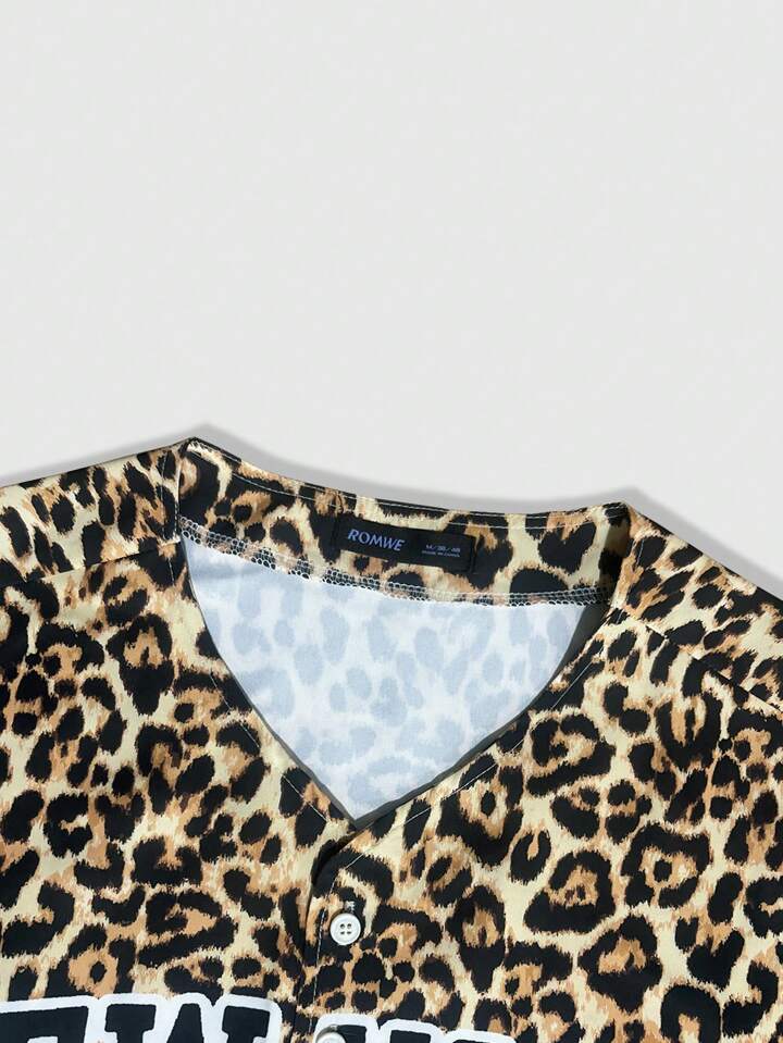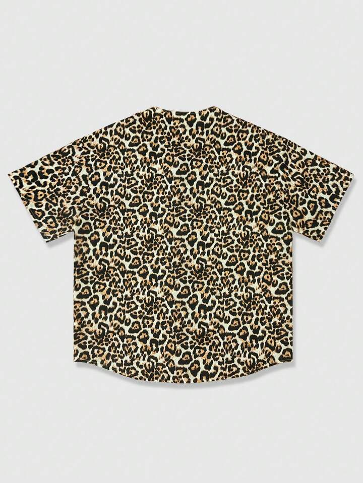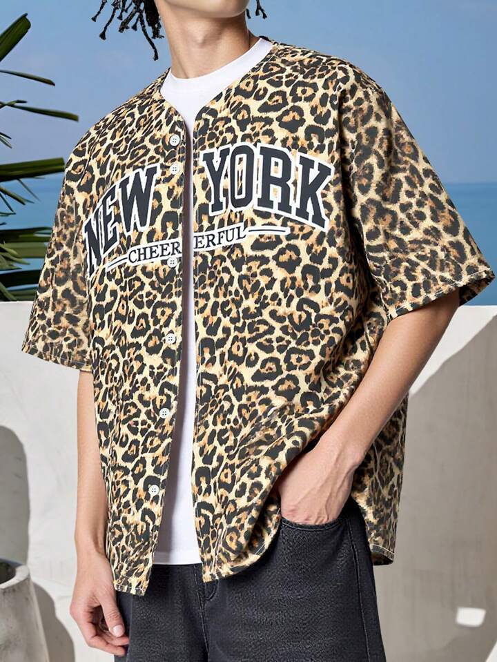 Camisa casual con estampado de leopardo y gráfico de NEWYORK para hombre
