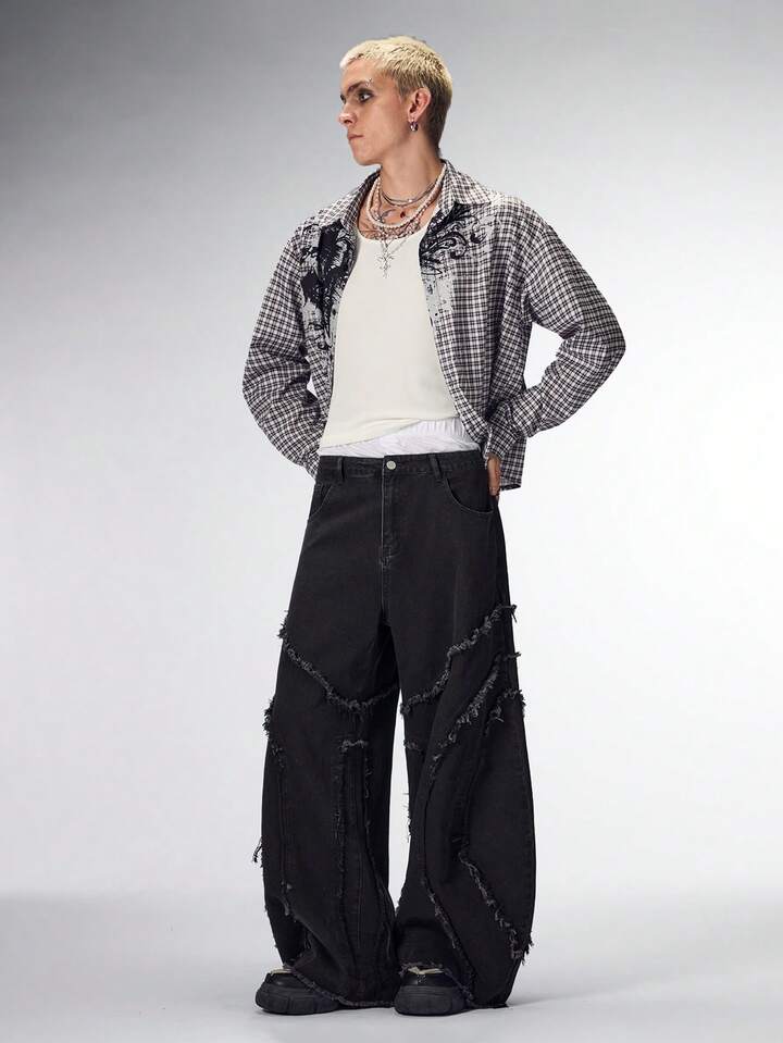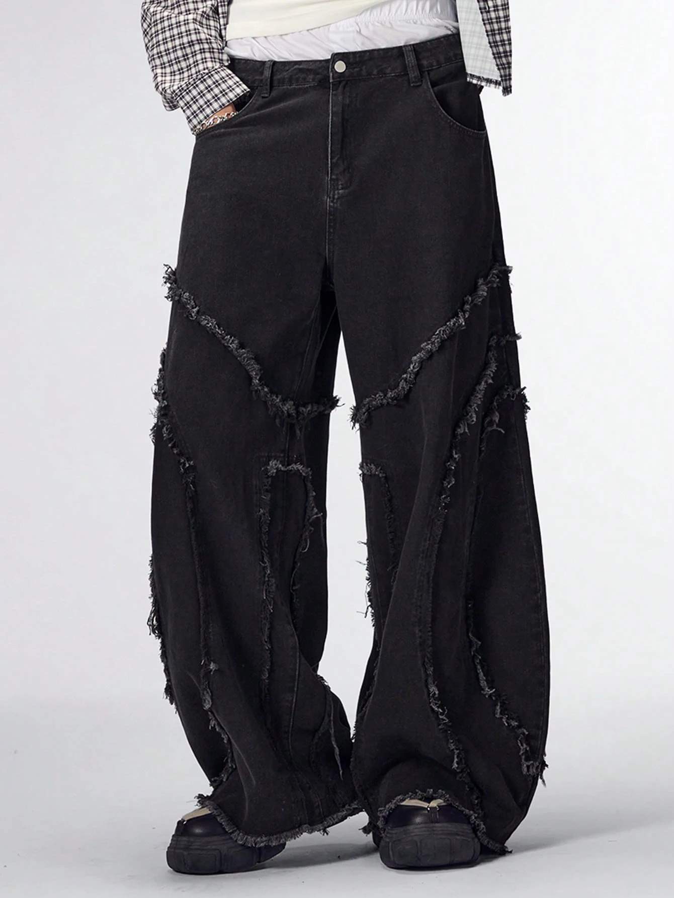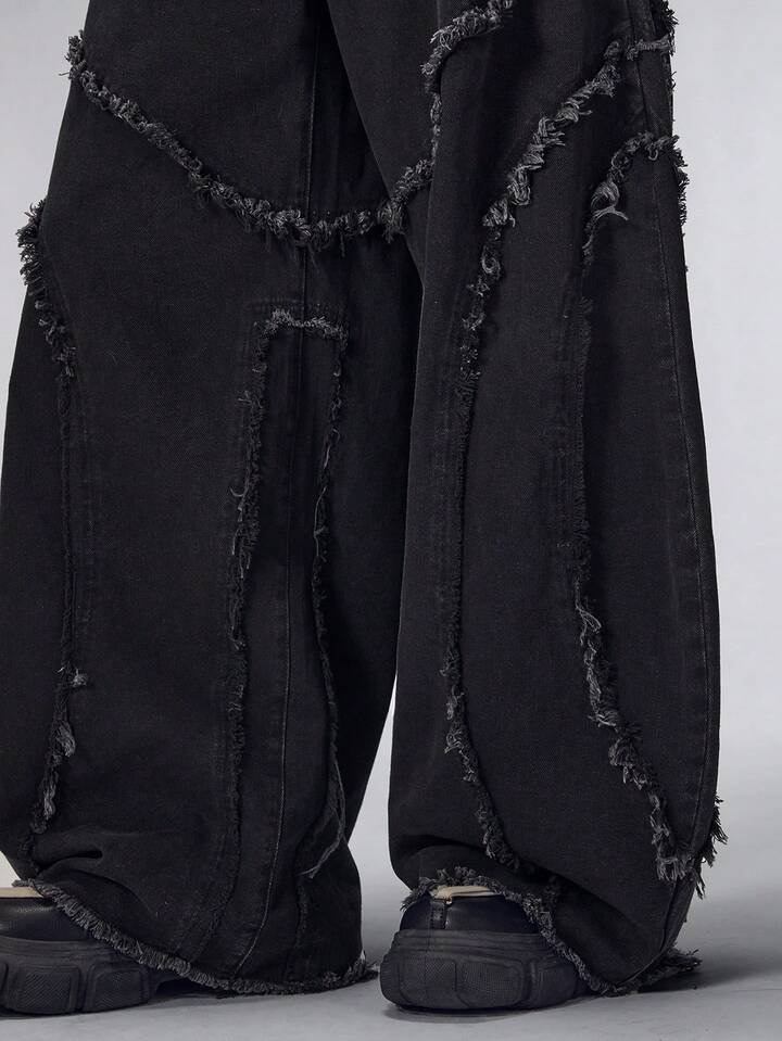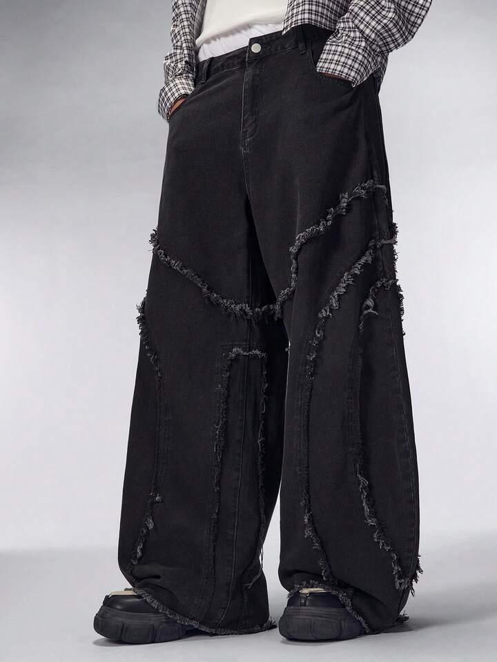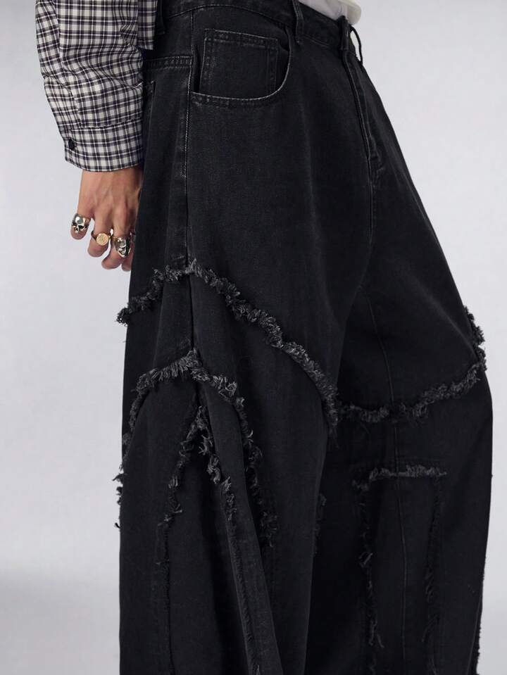 Jeans vaqueros casuales y de moda para hombre con bolsillos en diagonal, ajuste holgado y dobladillo deshilachado