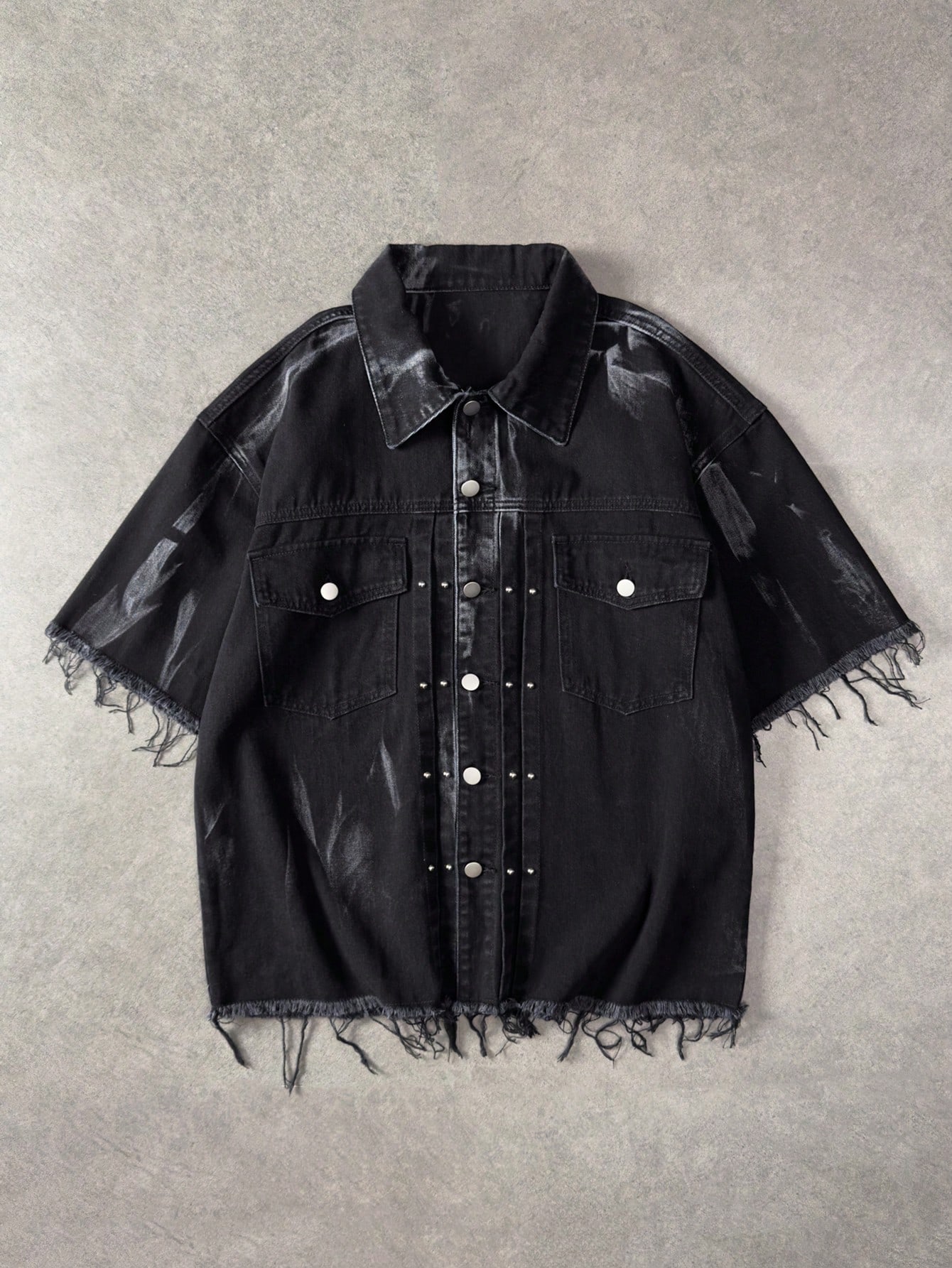 Camisa de mezclilla con flecos a la moda para hombre, verano