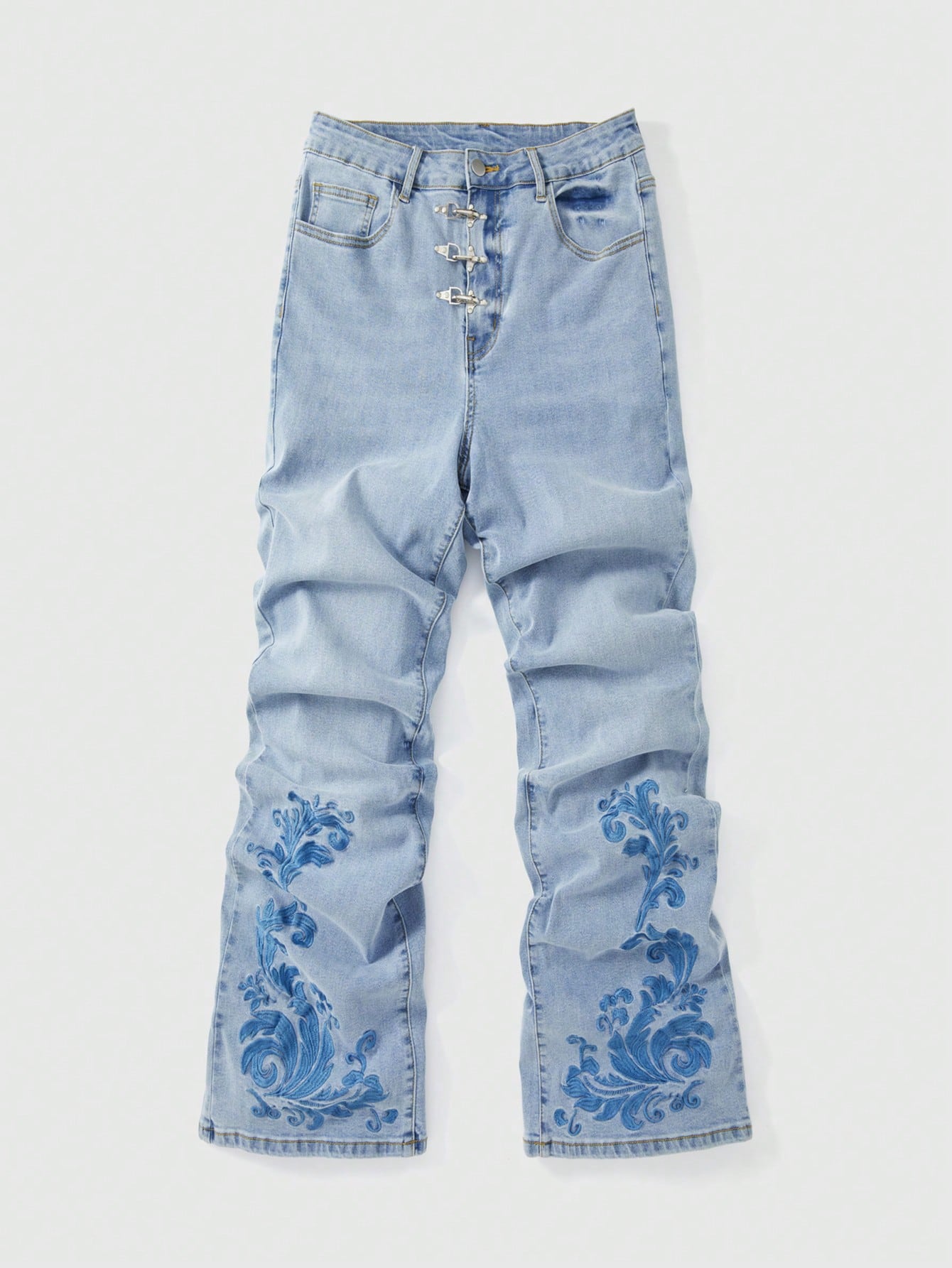 Jeans casuales con pliegues y estampado floral con bolsillos para hombre
