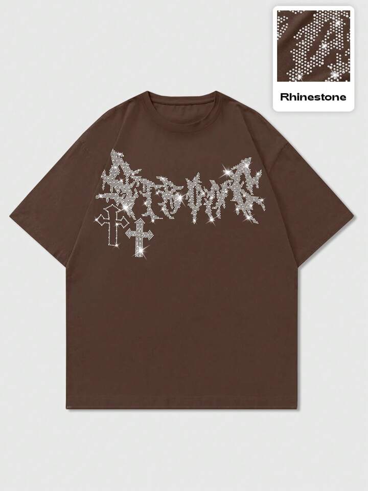 Goth Camiseta de moda casual de verano para hombre con estampado de cruz con destellos