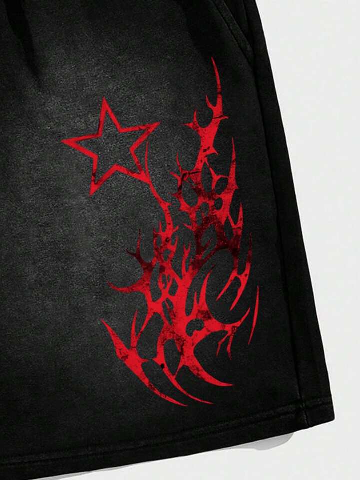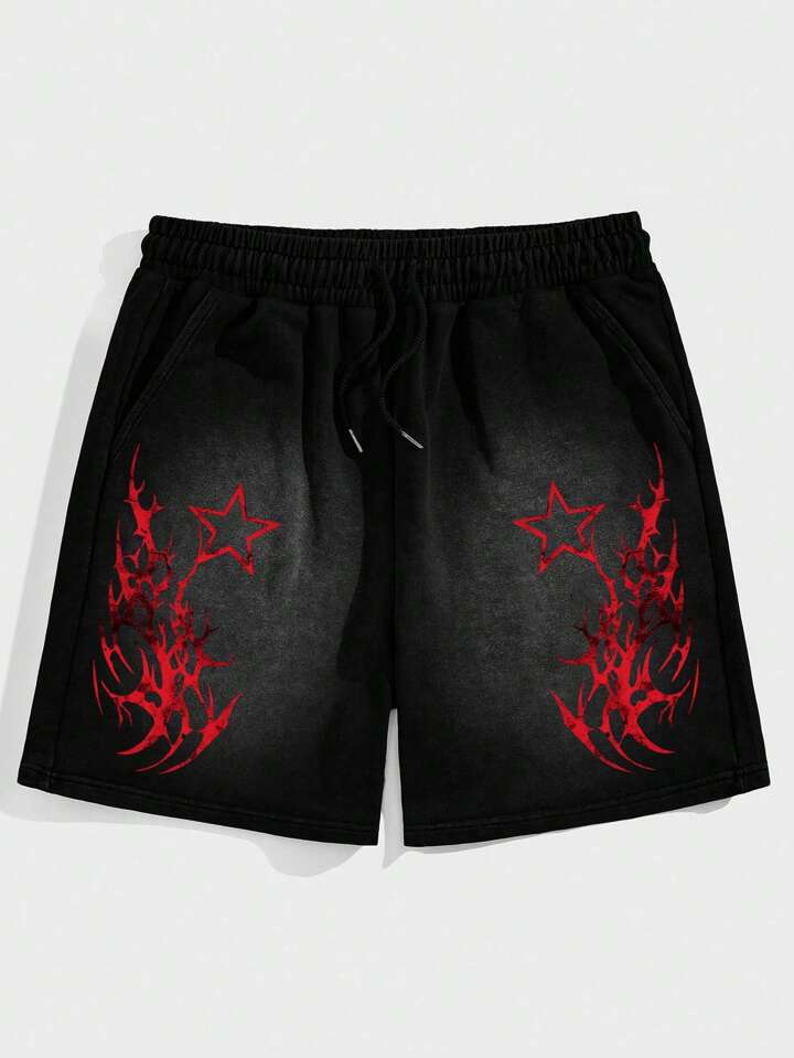 Goth Pantalones cortos casuales de verano con estampado de estrellas para hombres, Halloween