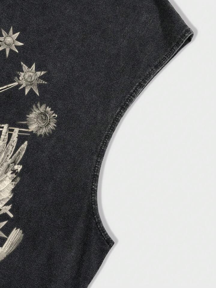 Goth Camiseta sin mangas con estampado de cruz gótica y Virgen María, lavado ácido desgastado, estilo gótico, para Halloween, estilo de los 2000