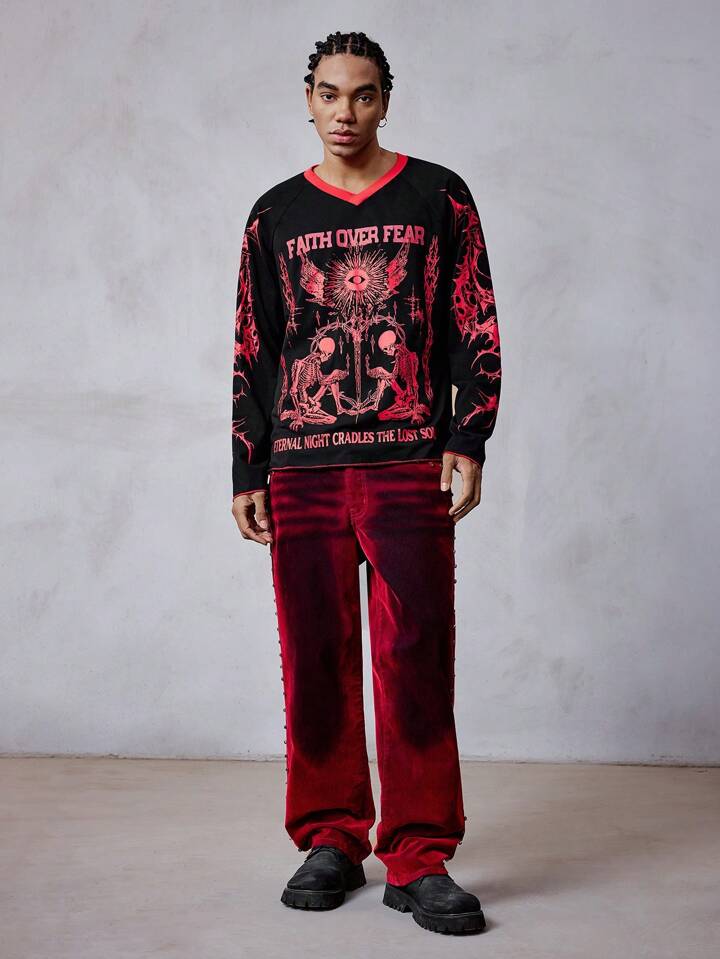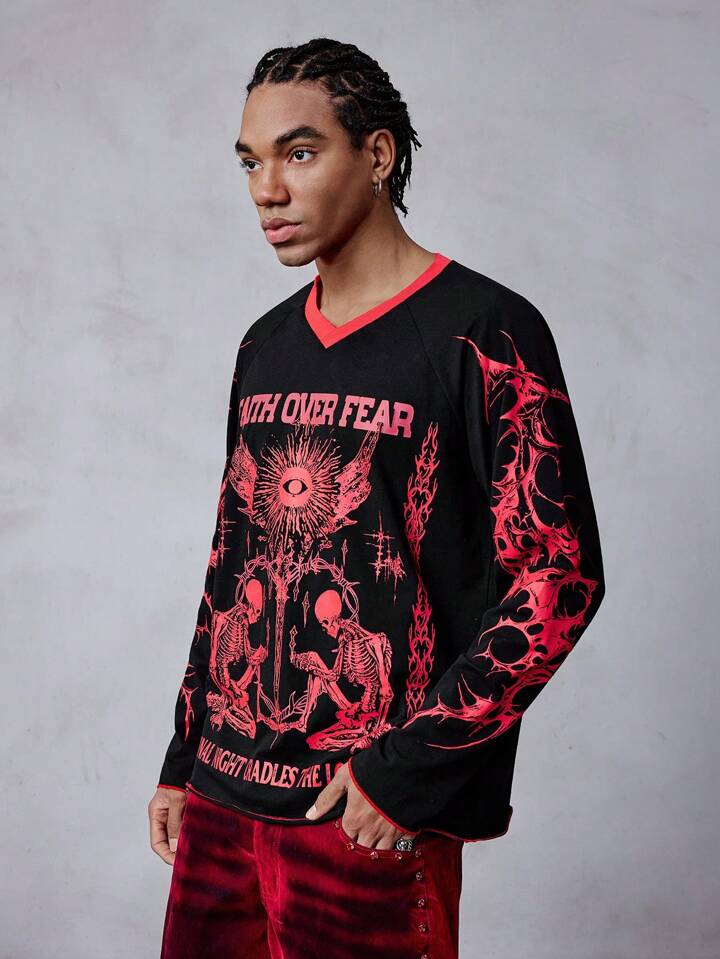 Goth Camiseta con estampado de calavera y eslogan de moda gótica para hombres, Halloween