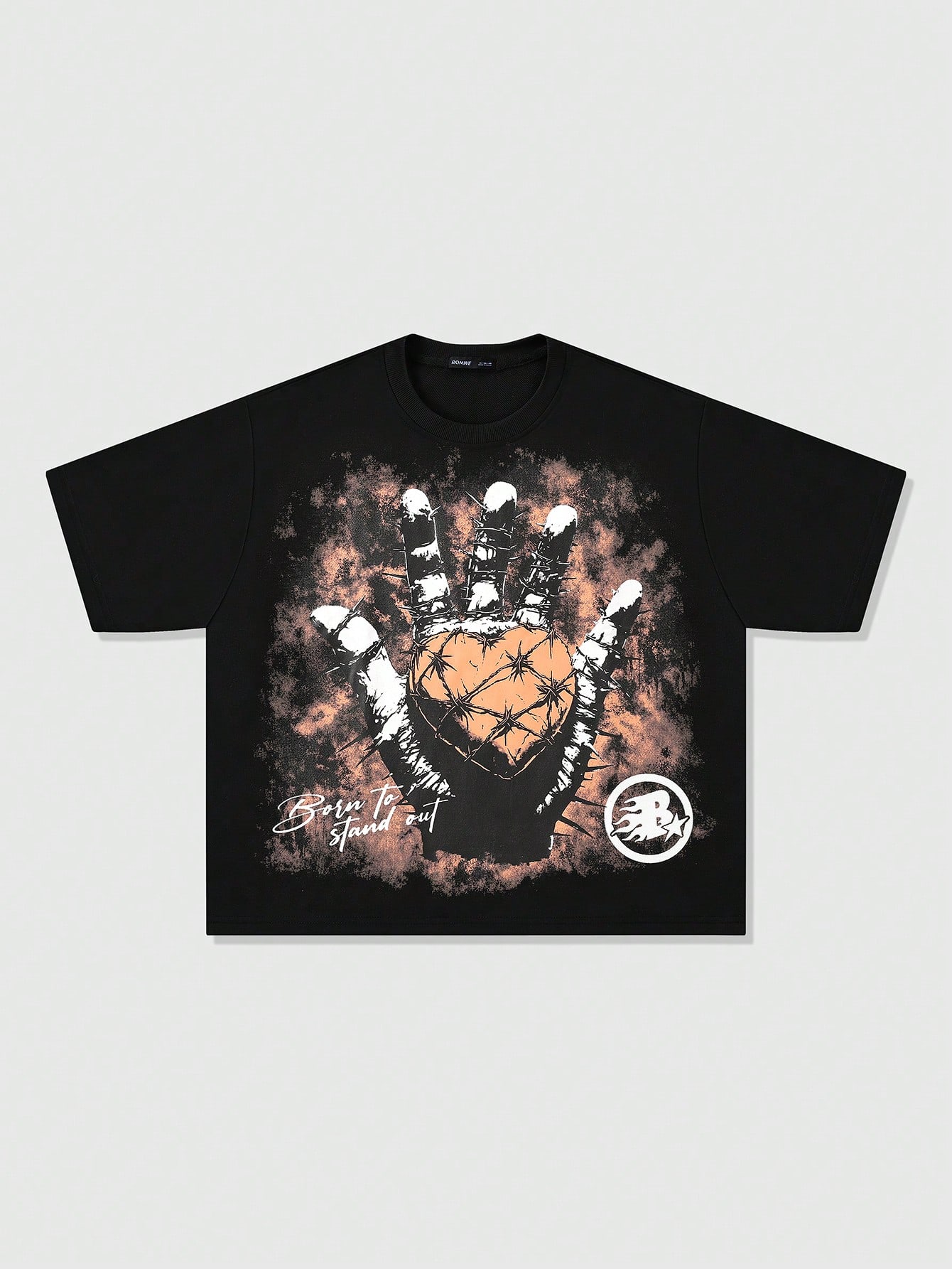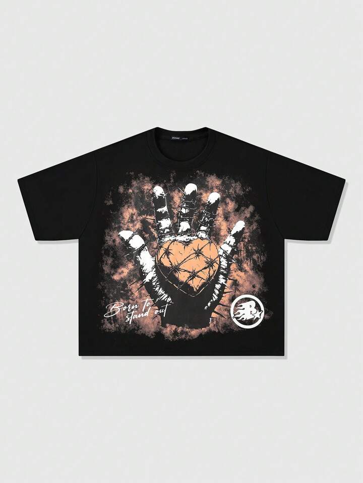Street Life Camiseta corta de estampado oversize de peso pesado para hombre