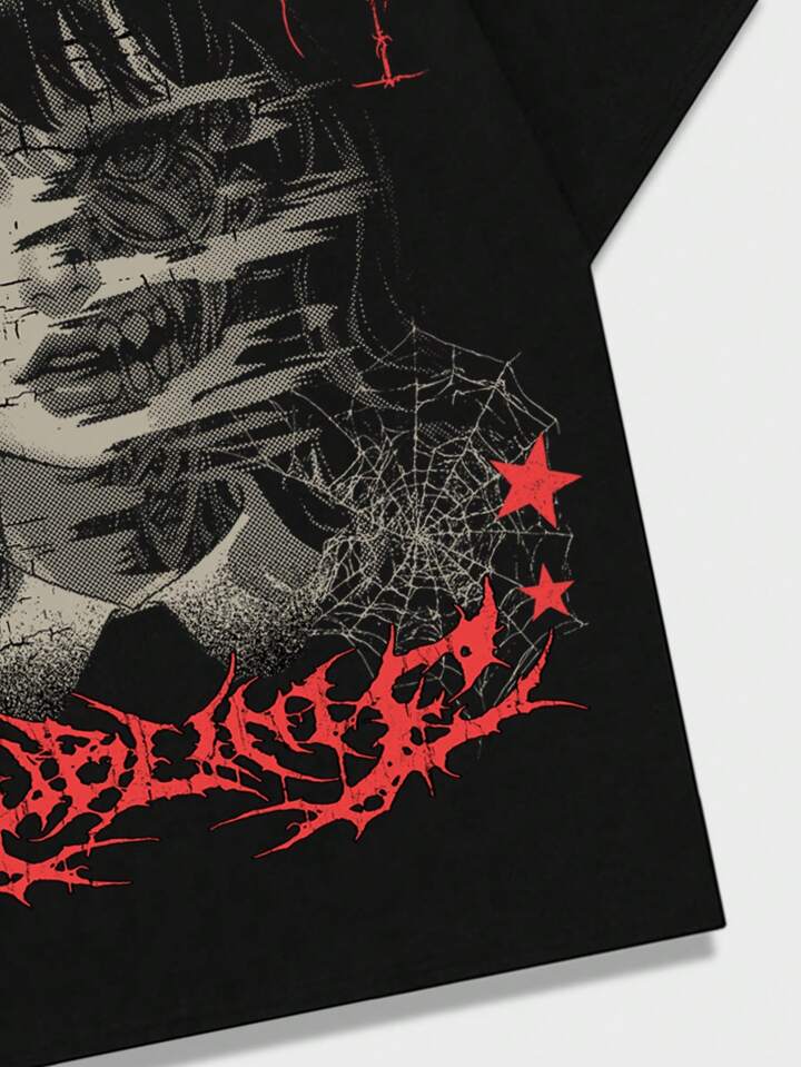 Anime Camiseta casual de manga corta y cuello redondo con estampado de letras y cifras para hombre