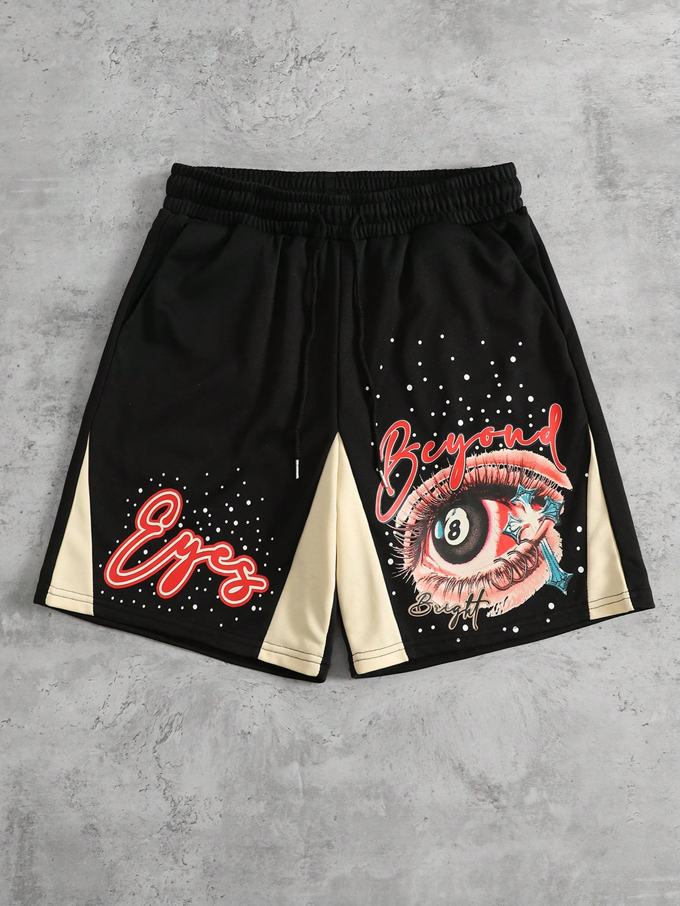 Pantalones cortos casuales y versátiles para uso diario con cordón en la cintura y estampado de letras y ojos para hombres