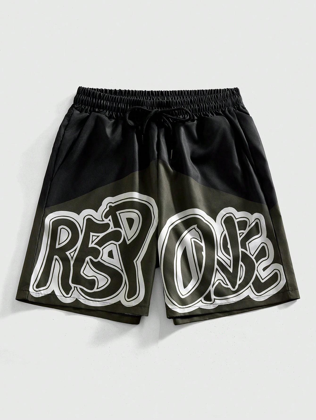 Pantalones cortos casuales para hombres con estampado de letras, cintura con cordón y bolsillos