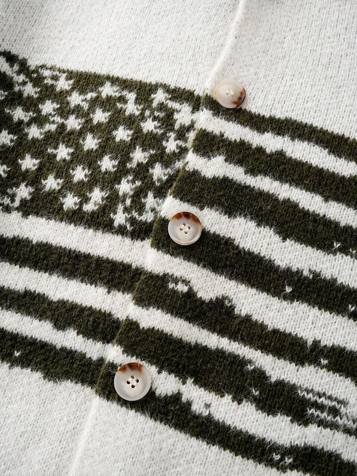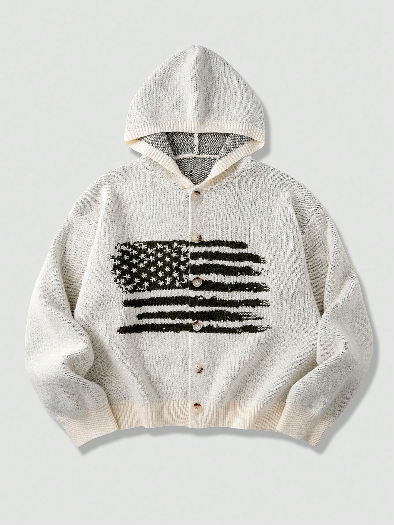 Chaqueta con capucha de manga larga de un solo pecho con patrón de jacquard de la bandera americana de corte holgado para hombre