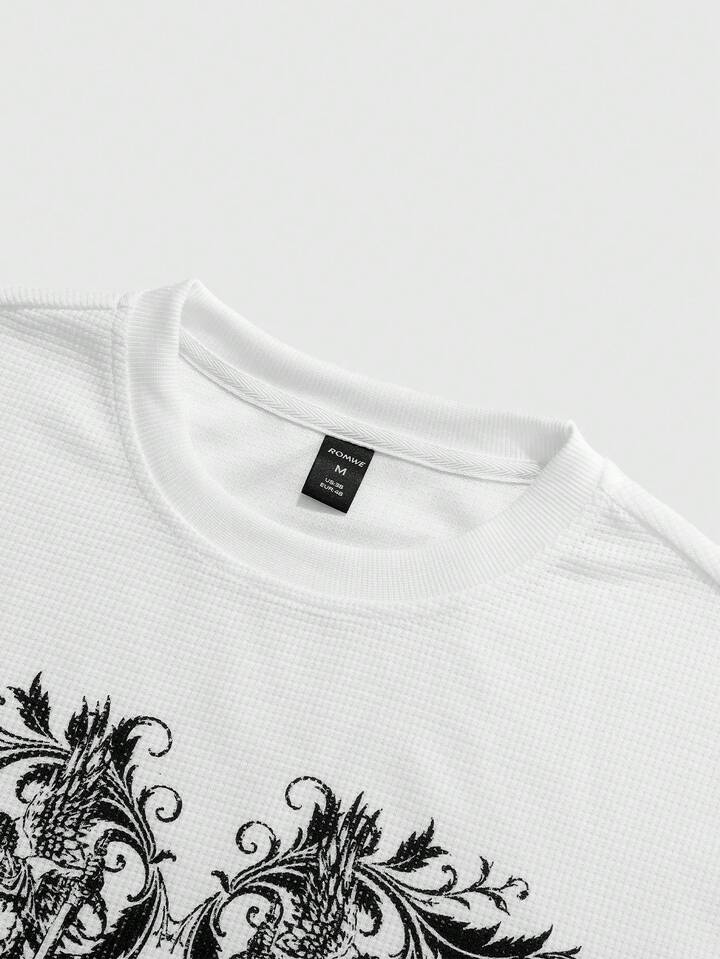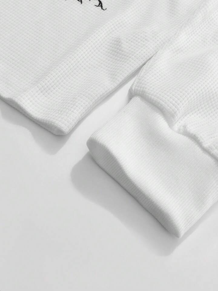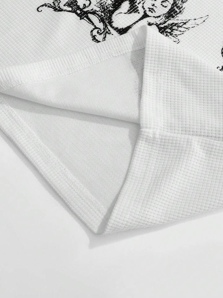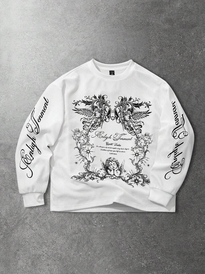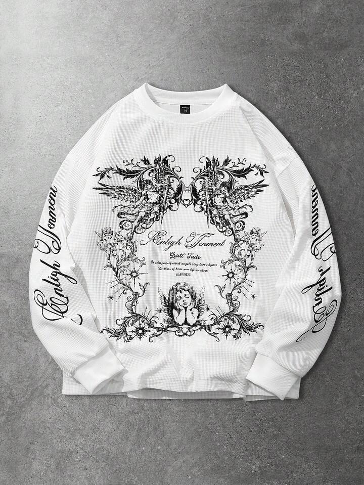 Camiseta casual de manga larga de cuello redondo y corte holgado con estampado de lema de ángel para hombres