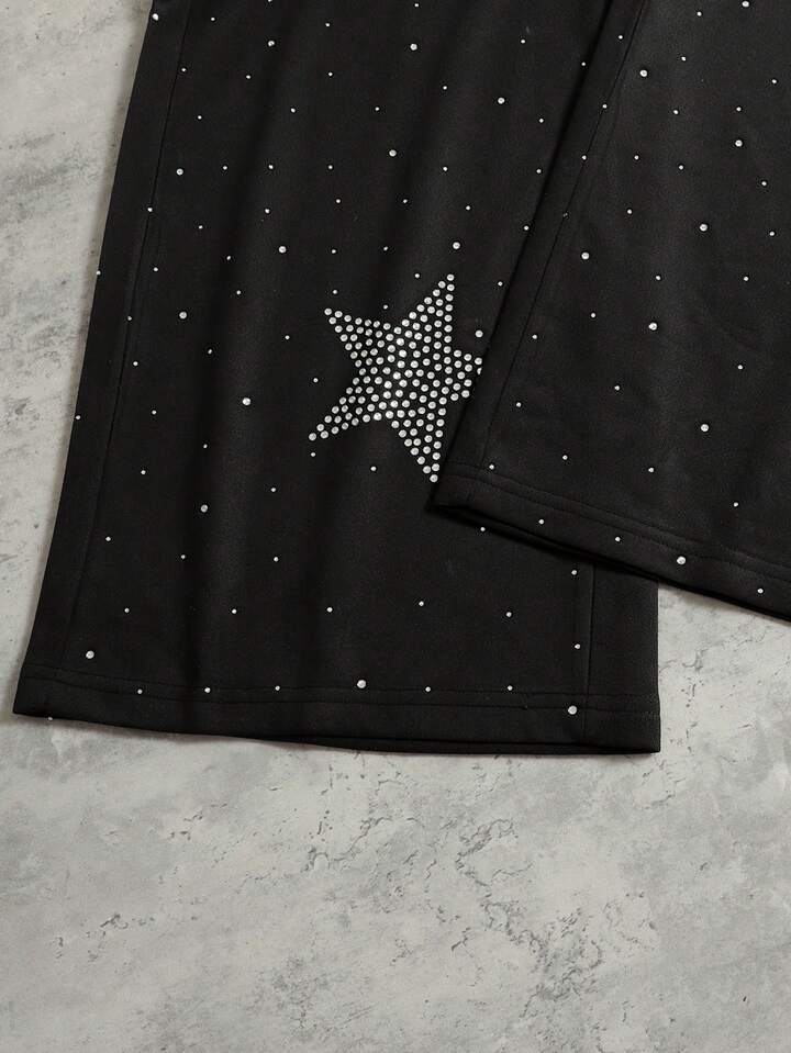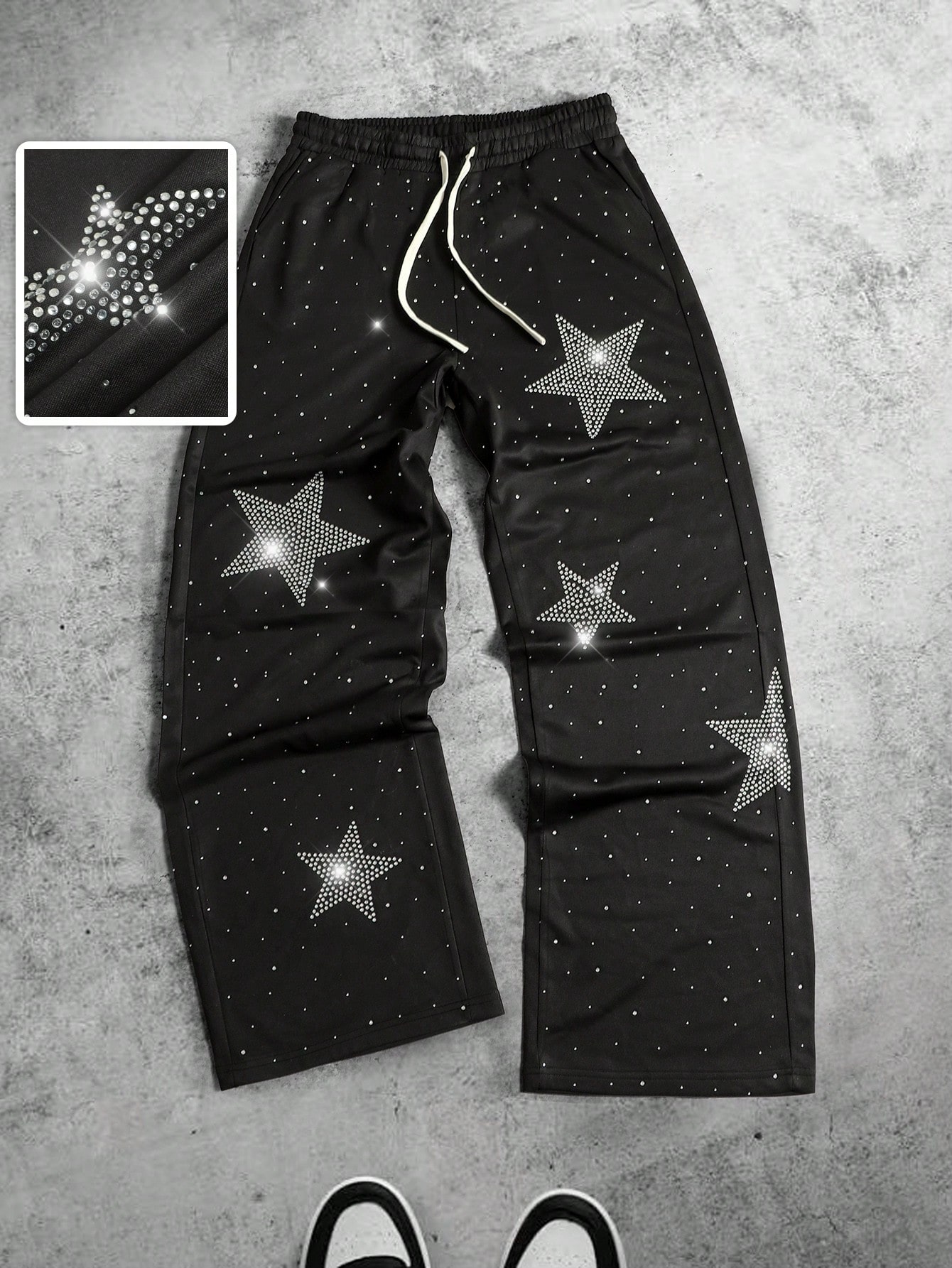 Pantalones de chándal rectos y holgados para hombres con diseño de estrellas de diamantes brillantes