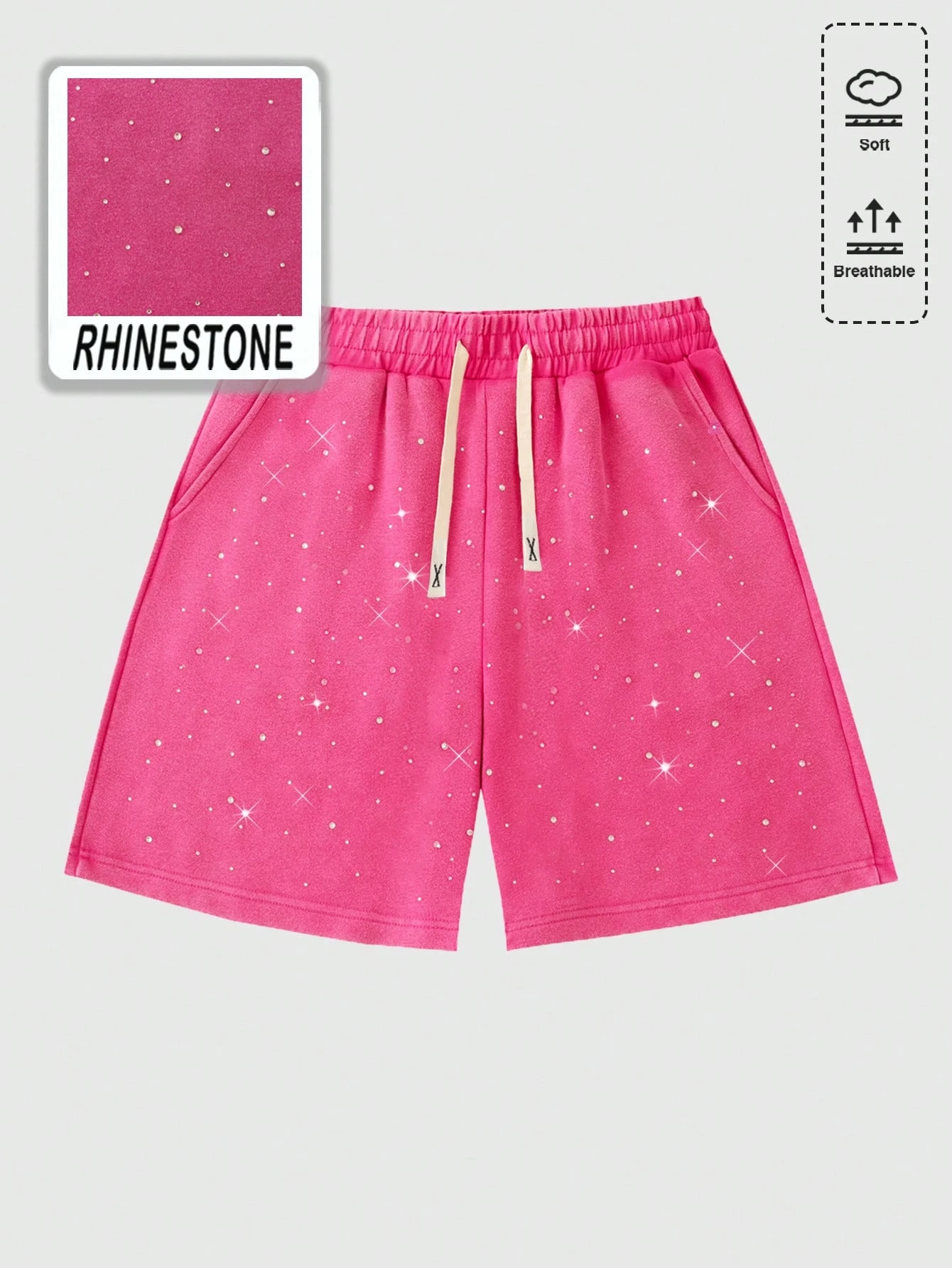 Pantalones cortos casuales y sueltos de moda con cordón y diamantes de imitación para hombres