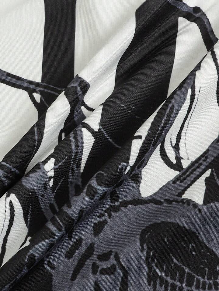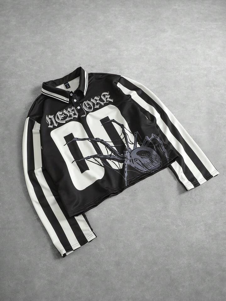 Camisa polo casual de manga larga con estampado de rayas numéricas para hombre, corte holgado